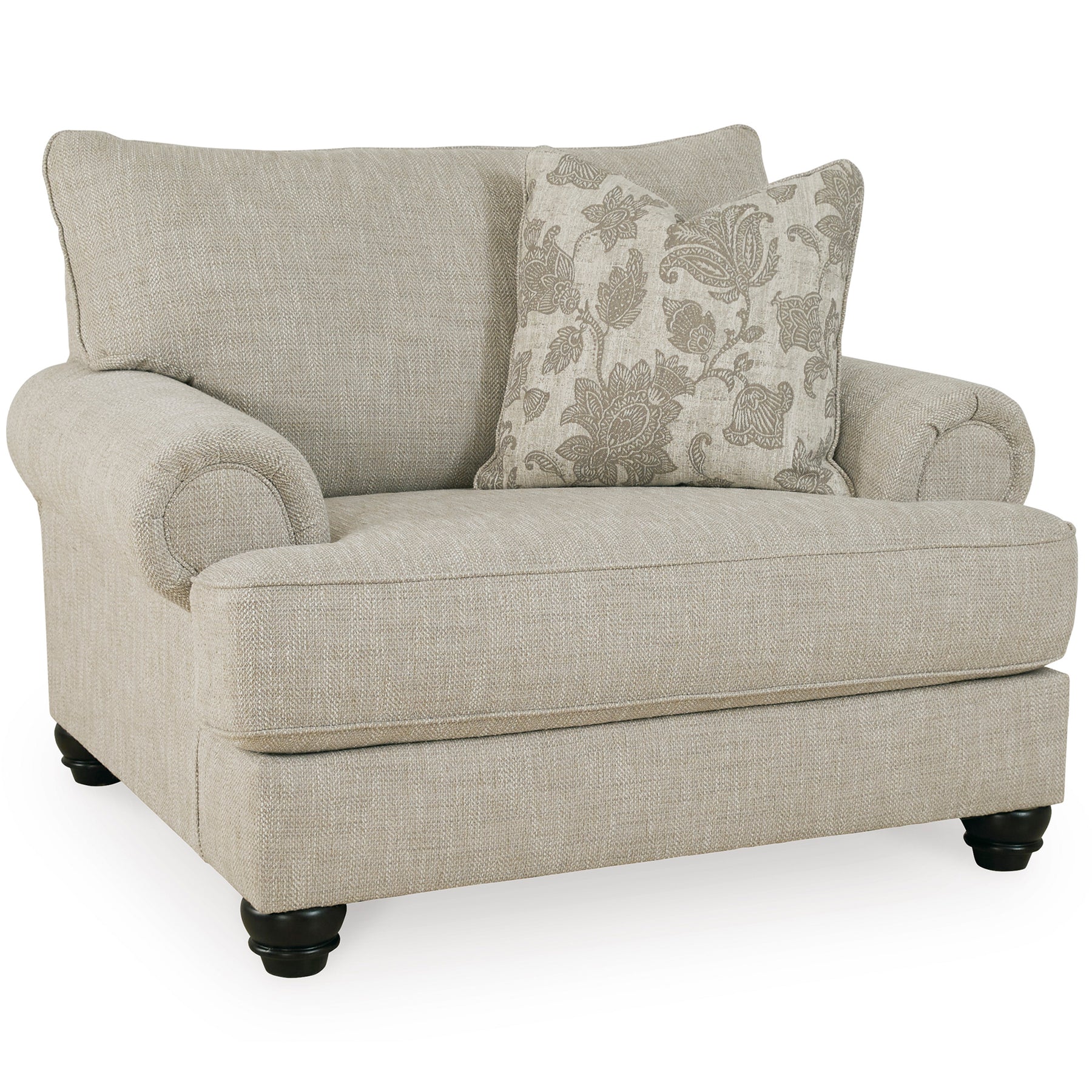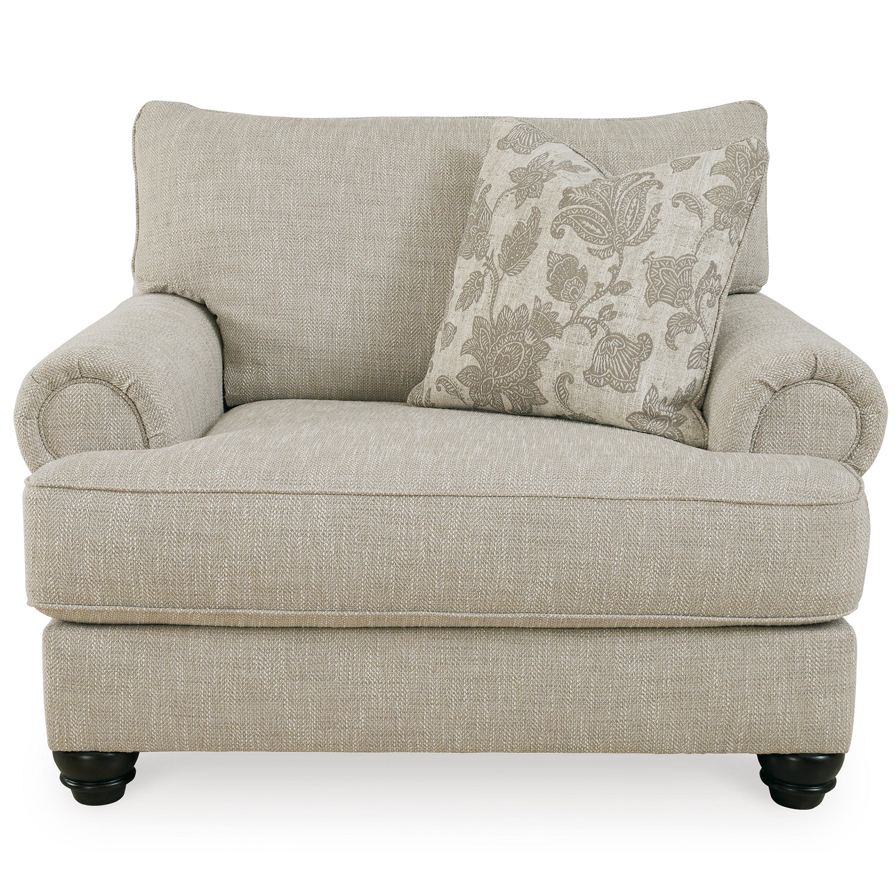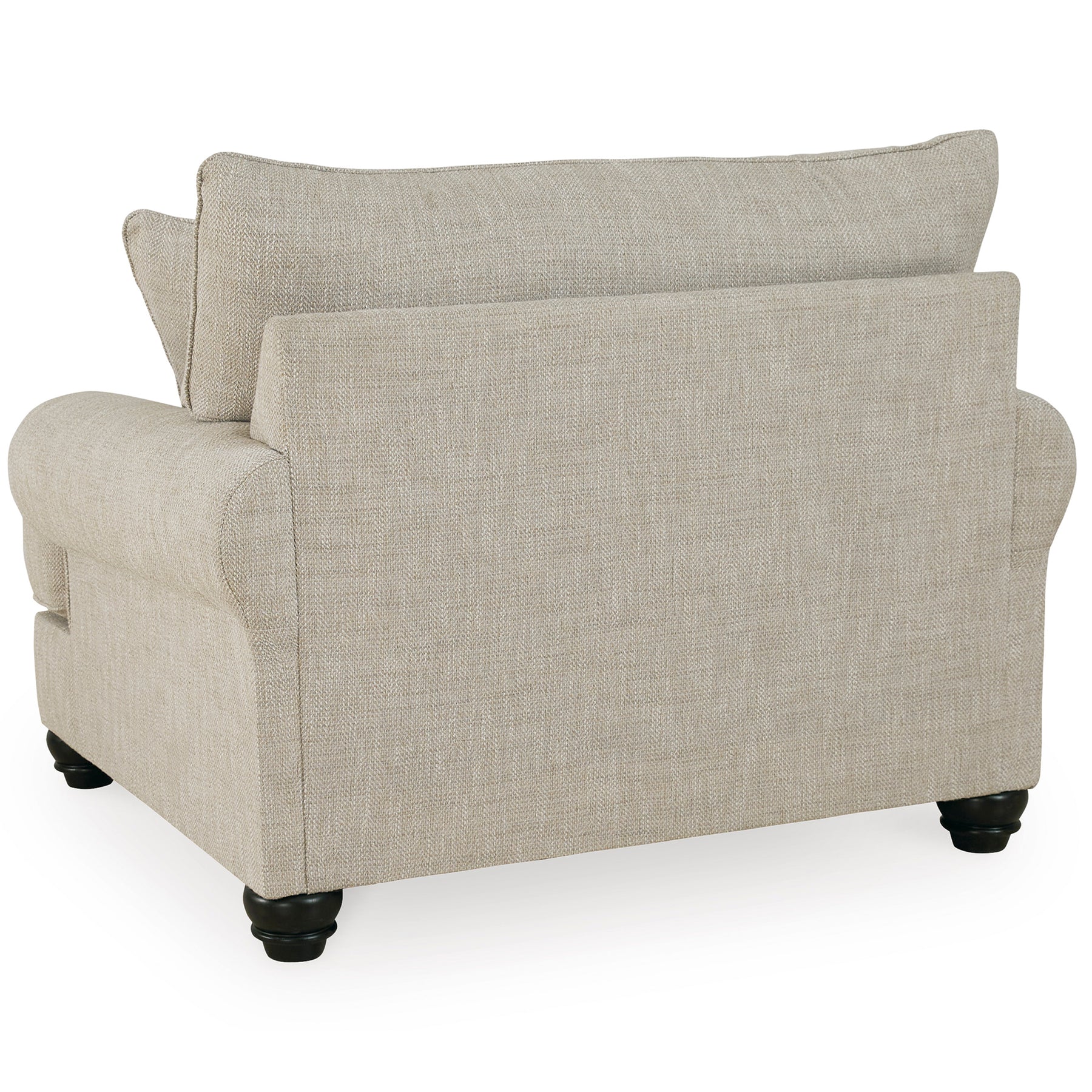 This oversized chair has an alluring look that's guaranteed to turn heads. Richly textured fabric in a light, easygoing hue is enhanced by even lighter flax peeking through. Distinctive roll arms add a dab of debonair, while indulgently plush cushions cradle you softly. Sit back and relax in comfort and style, with plenty of room to stretch out and unwind at the end of a long day.