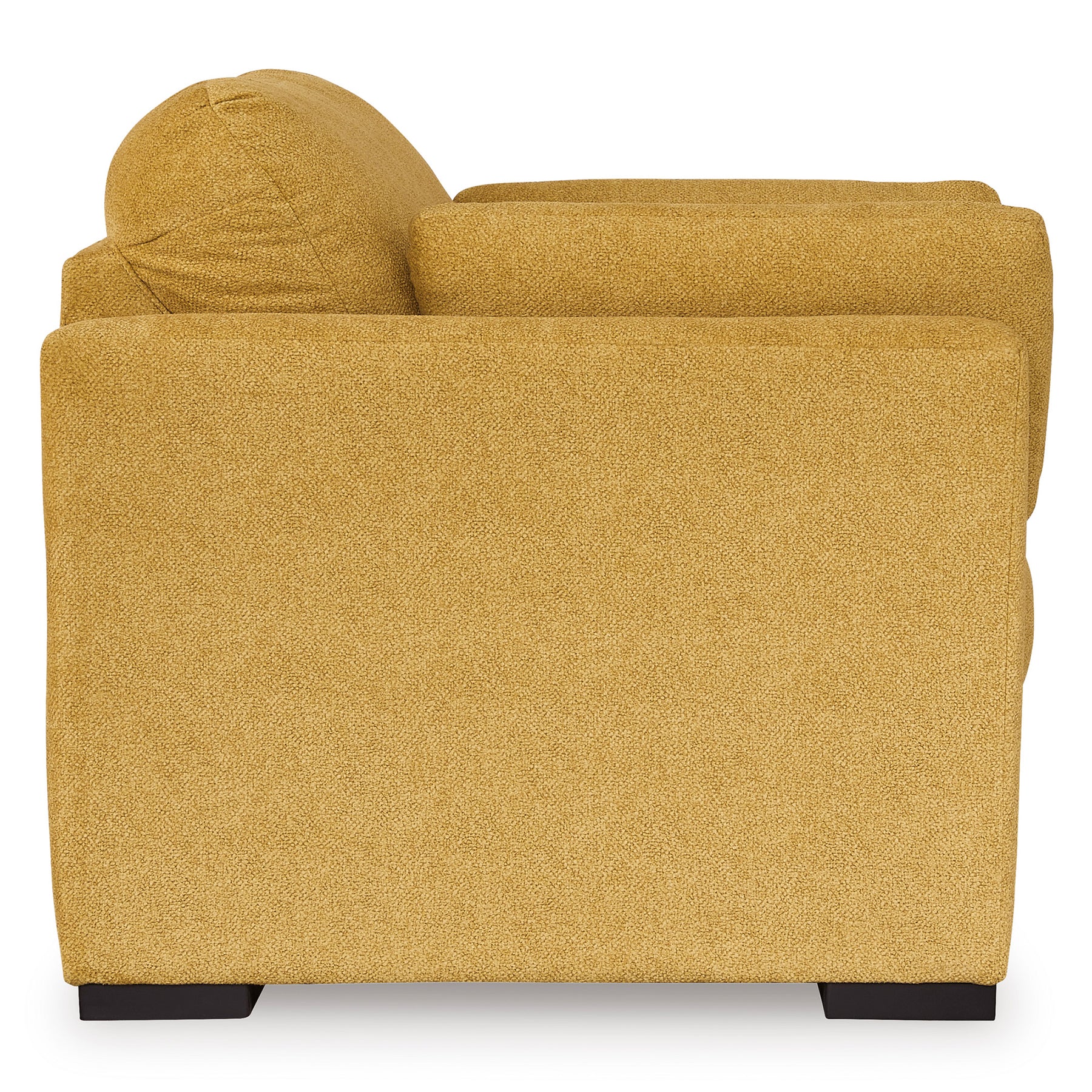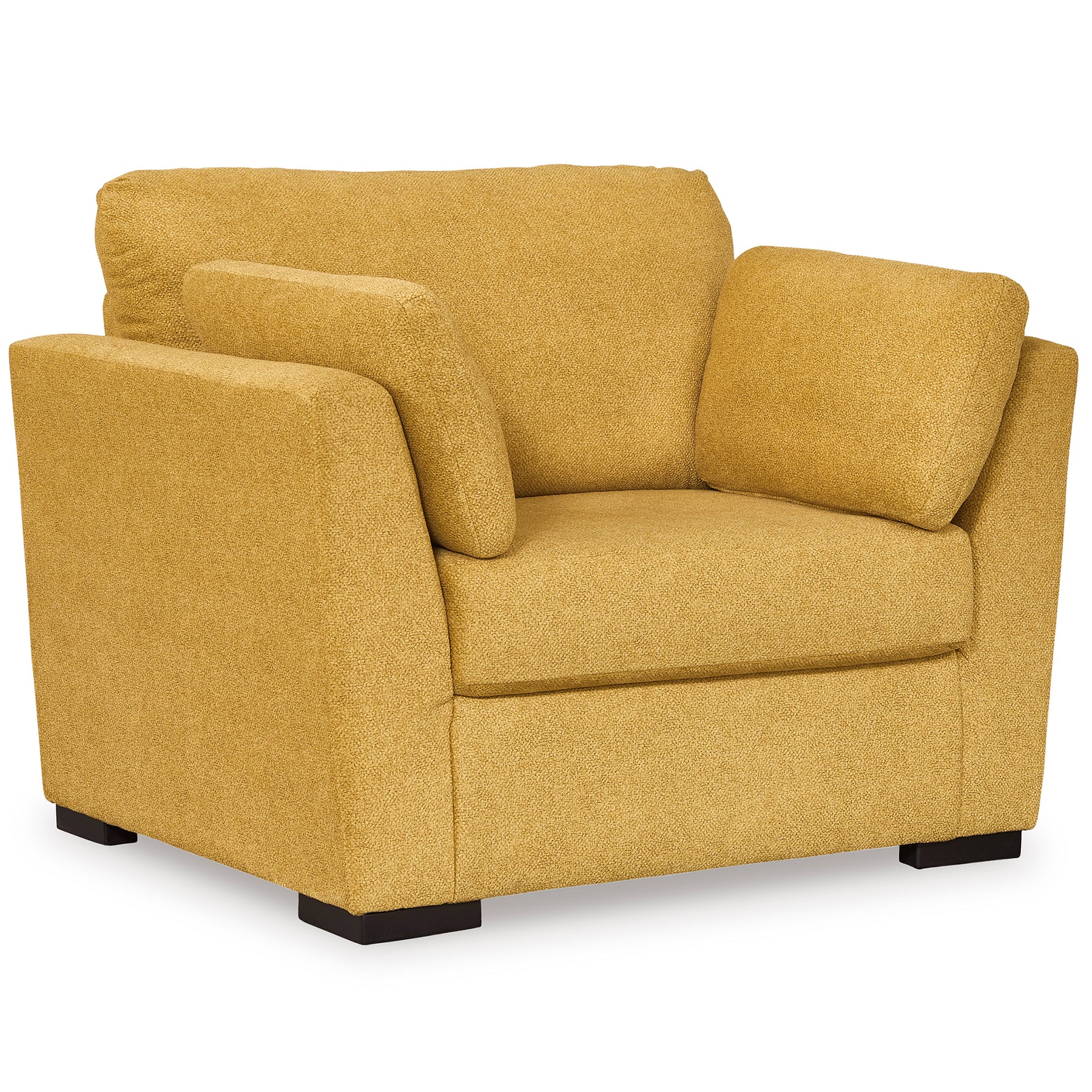 You want your home to reflect your modern, trendy eye for design. This oversized chair is here to help. Bold, bright and beautiful, it adds a fashion-forward pop of color to your living room. Velvet-like upholstery and matching bolster pillows keep comfort at top of mind, whether you're lounging around or entertaining guests. How’s that for fresh style and functionality?