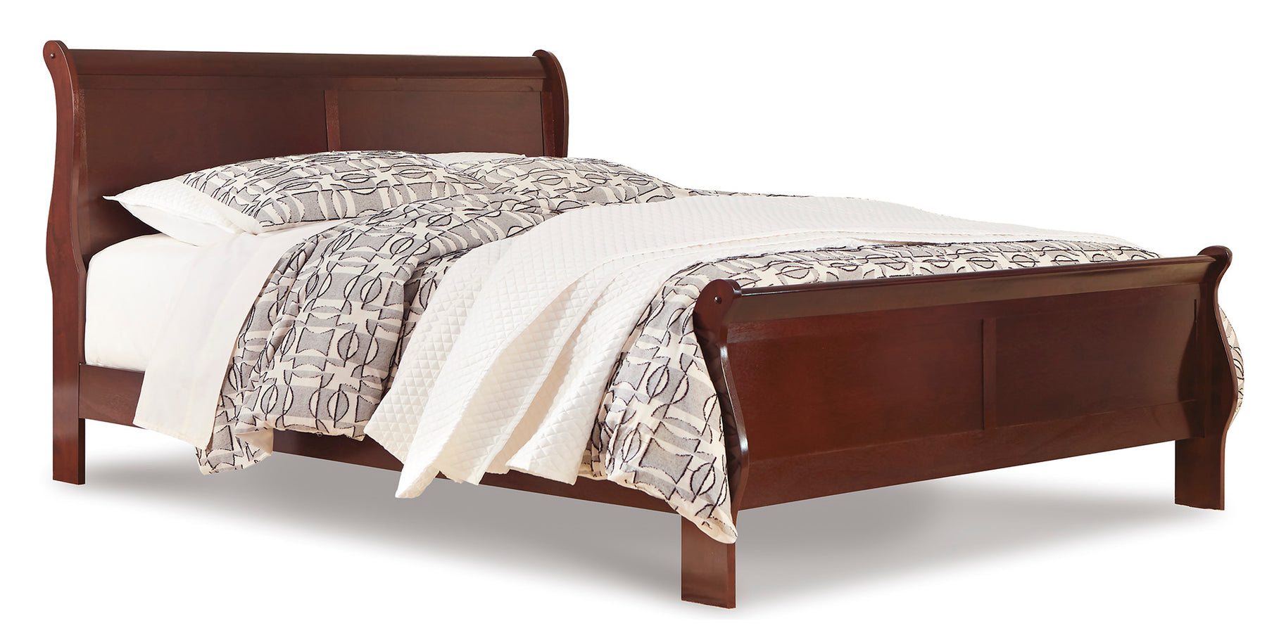 This king sleigh bed is the epitome of traditional decor. Louis Philippe-style moulding dates back to the mid-19th century when furnishings were lavish yet somewhat simple. Deep finish brings warmth and elegance into the space. Mattress and foundation/box spring sold separately.