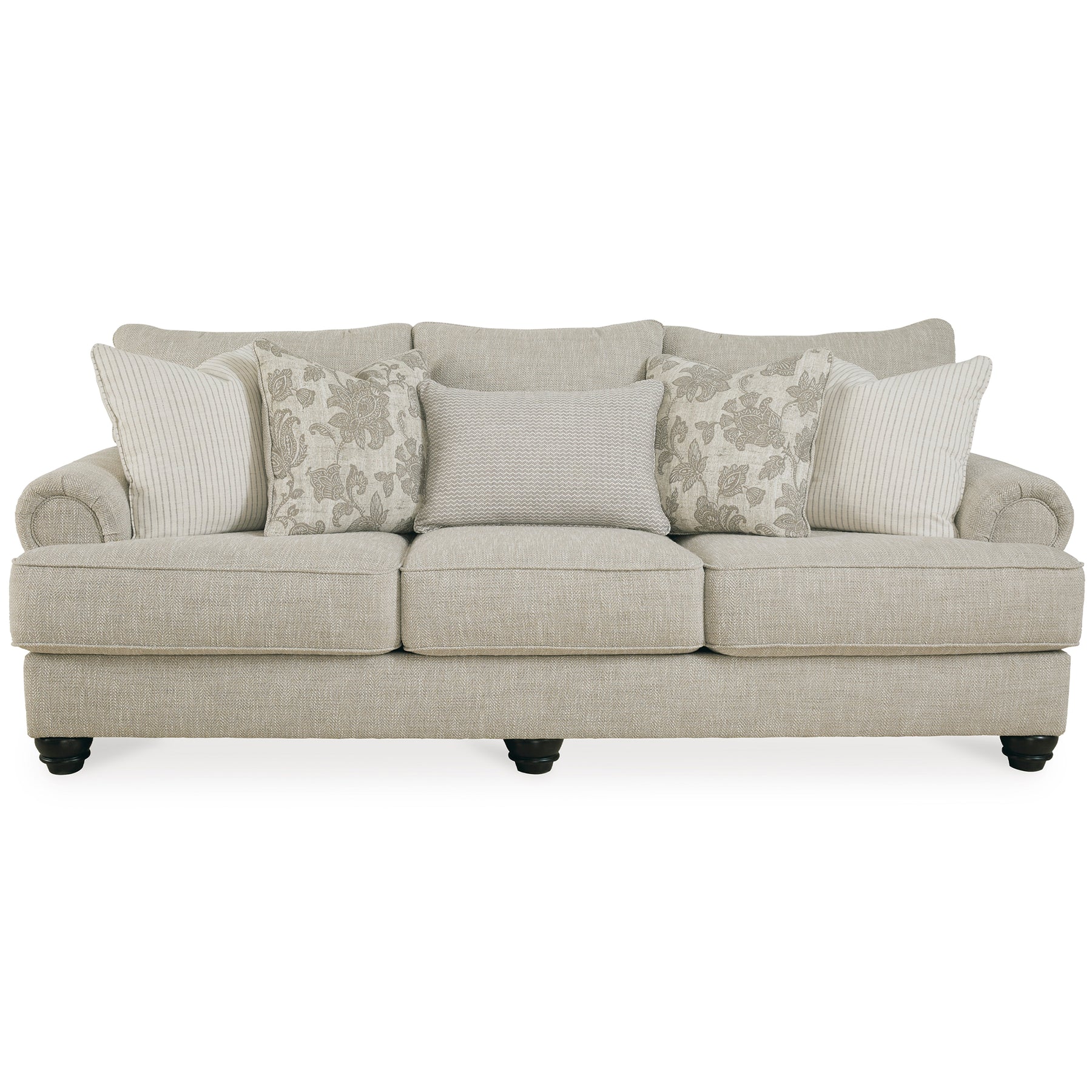 | Details | Corner-blocked frame, Loose reversible cushions, Accent pillows included, Pillows filled with feather blend, Polyester upholstery, Exposed feet with faux wood finish, Platform foundation system resists sagging 3x better than spring system after 20,000 testing cycles by providing more even support, Smooth platform foundation maintains tight, wrinkle-free look without dips or sags that can occur over time with sinuous spring foundations | |