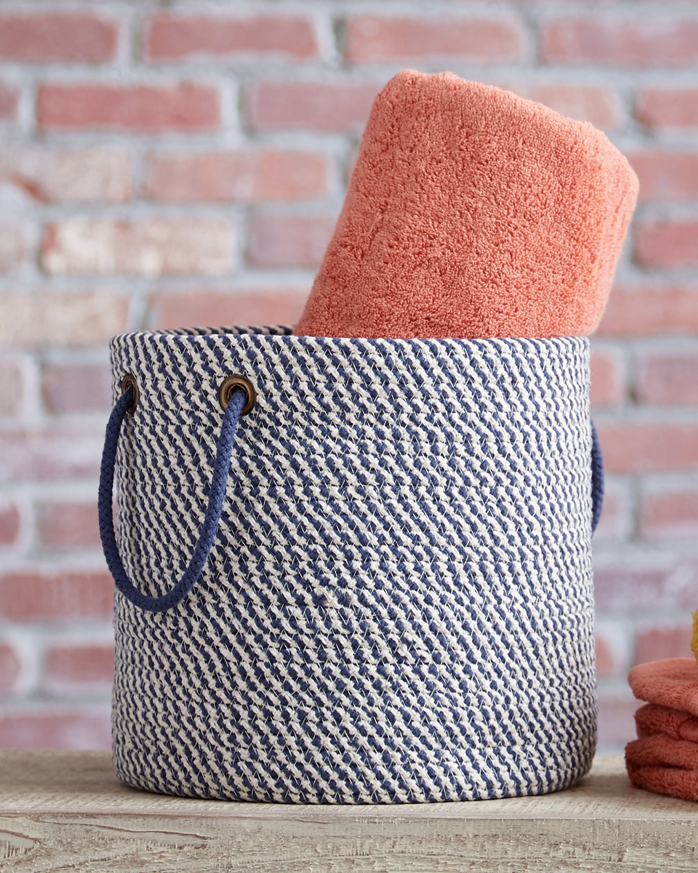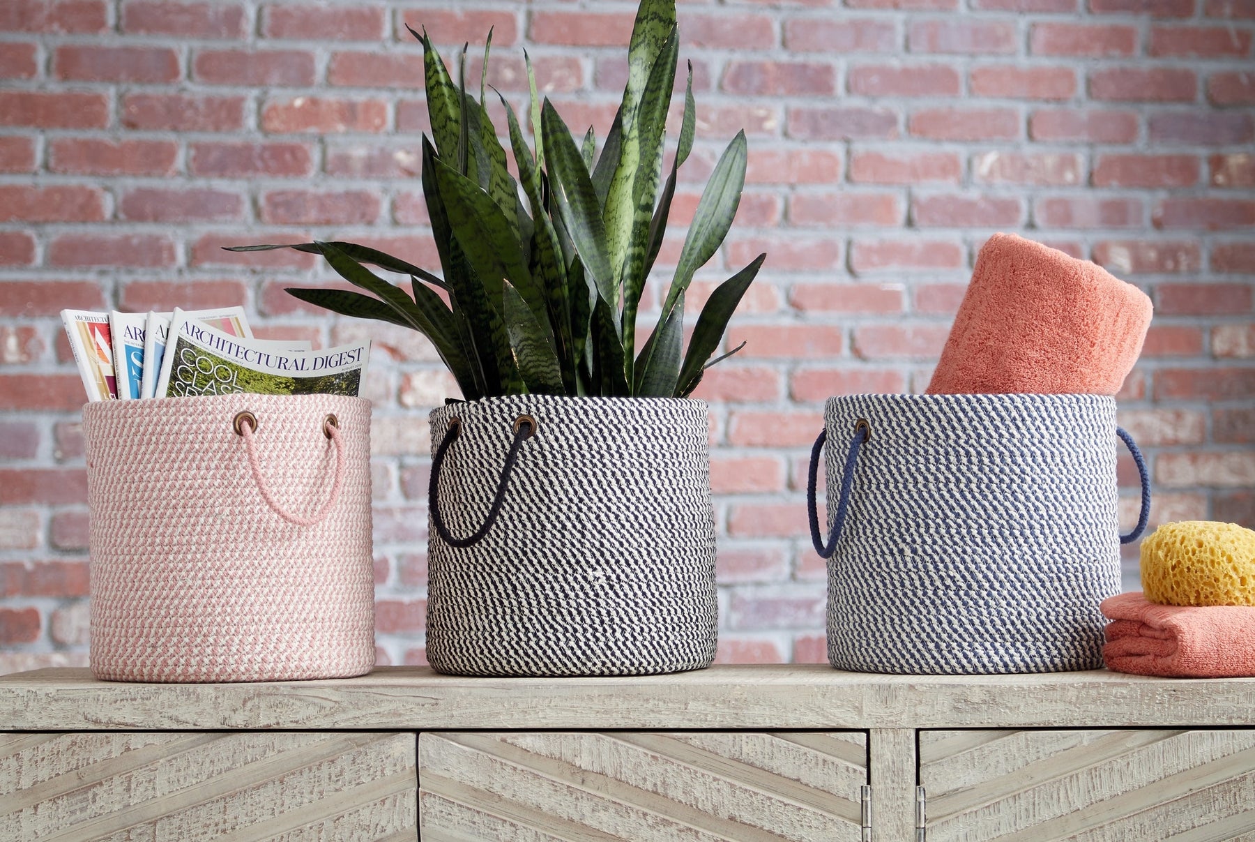 Clutter doesn’t stand a chance with this hand braided basket around. Pick it up by the braided handles and move it to where it’s needed most. It not only provides storage but it’s also stylish. Black and white design is timeless and teeming with cottony texture.