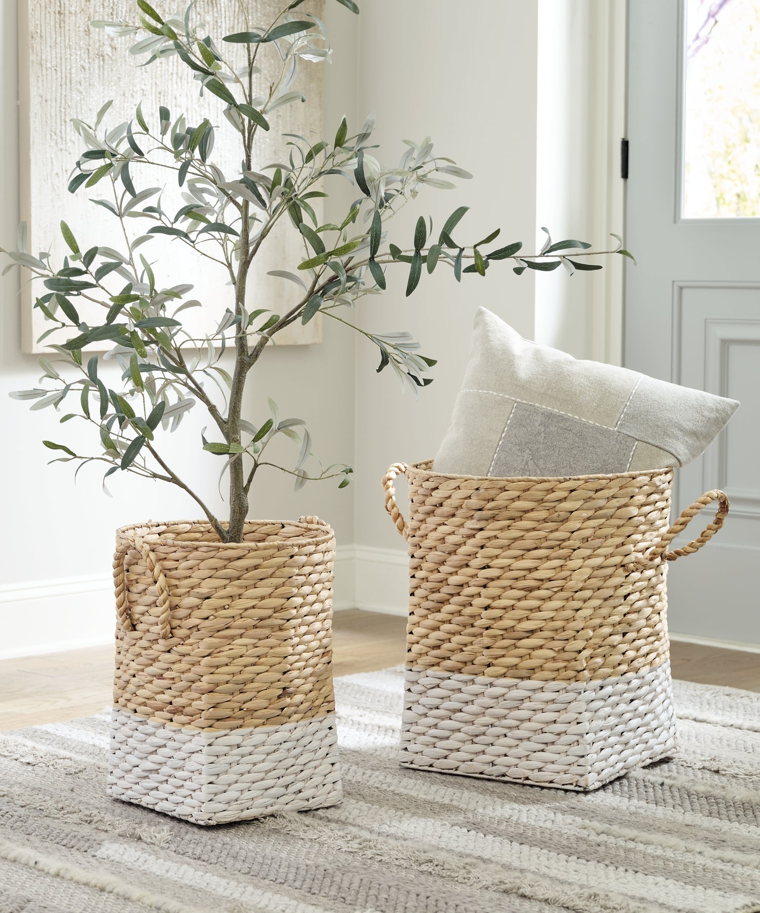 | Details | Set of 2, Made of woven water hyacinth, Antiqued white finish and natural brown color, Due to the use of natural materials, some variations may occur | |