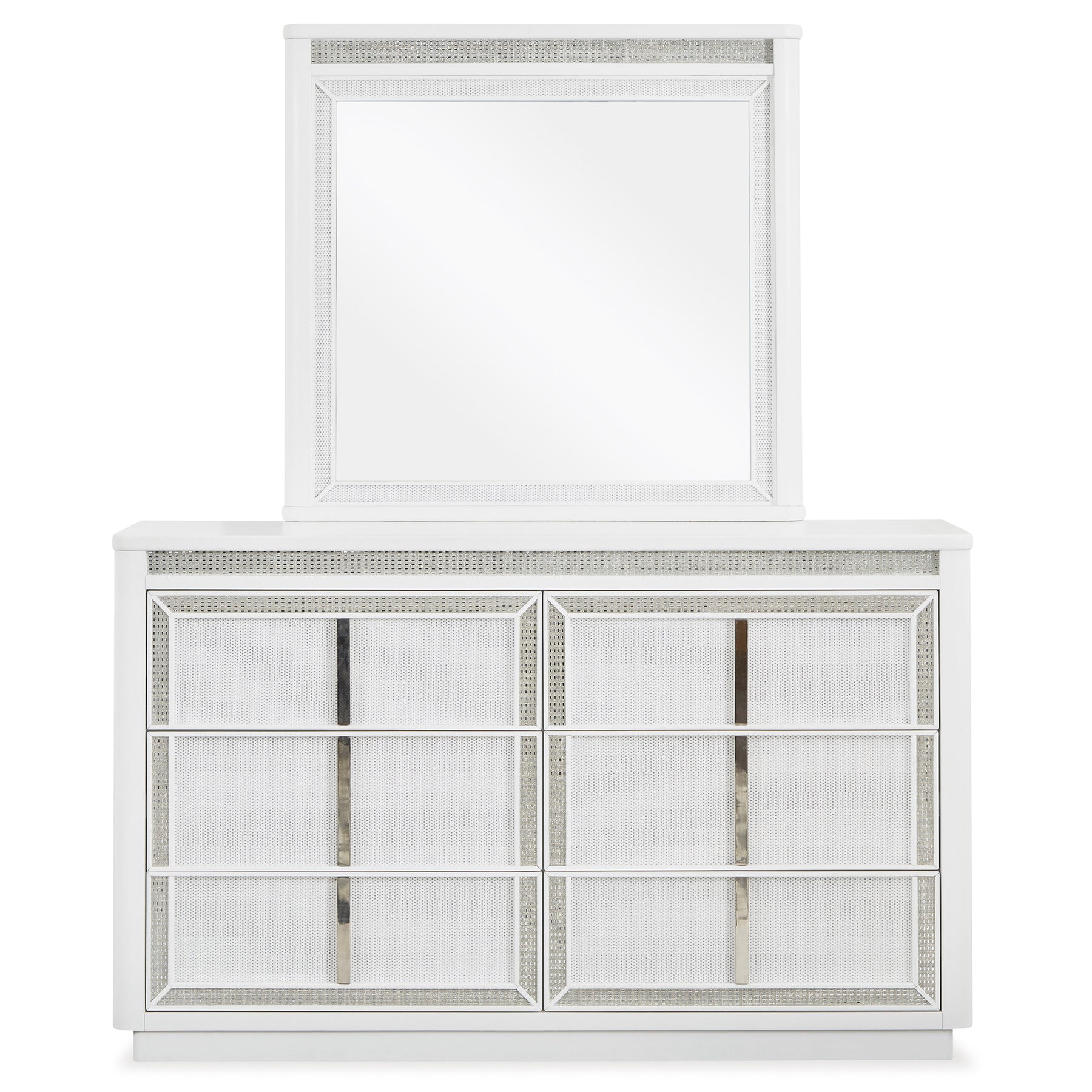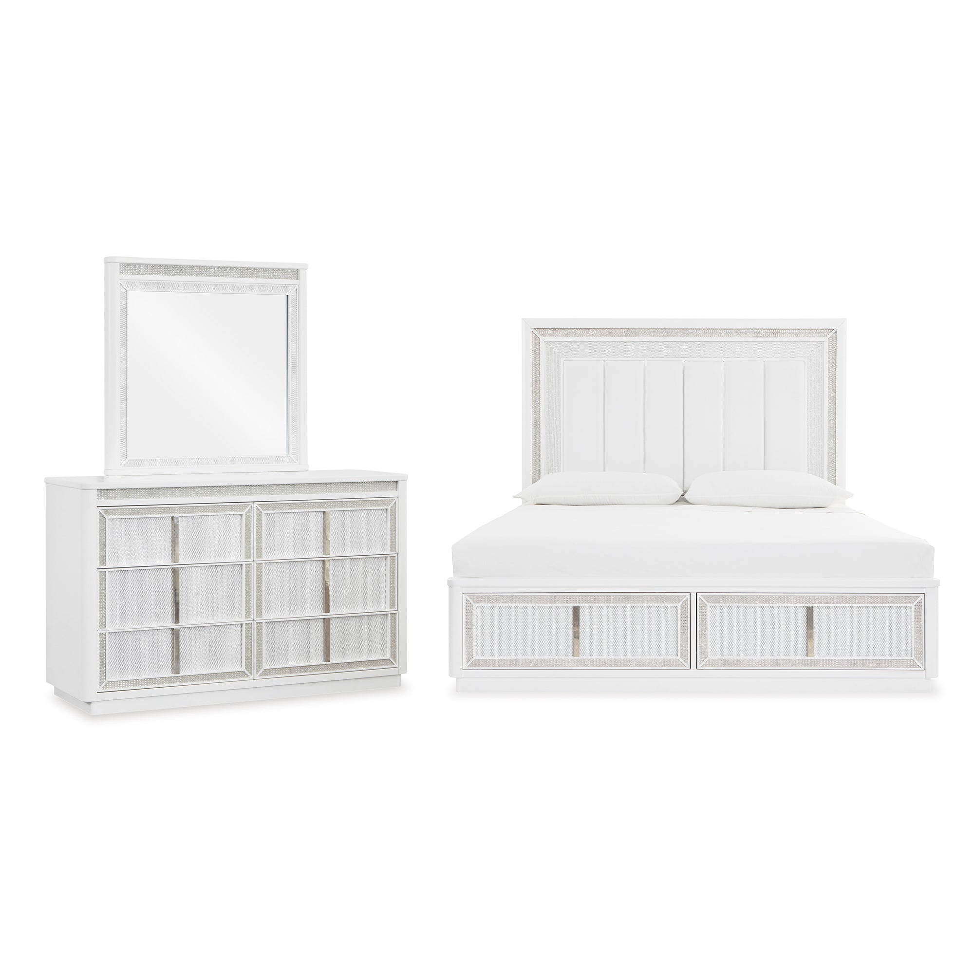 Chalanna King Upholstered Storage Bed with Mirrored Dresser