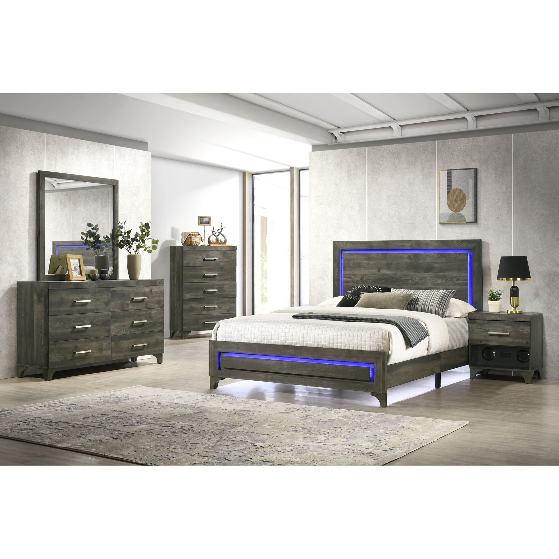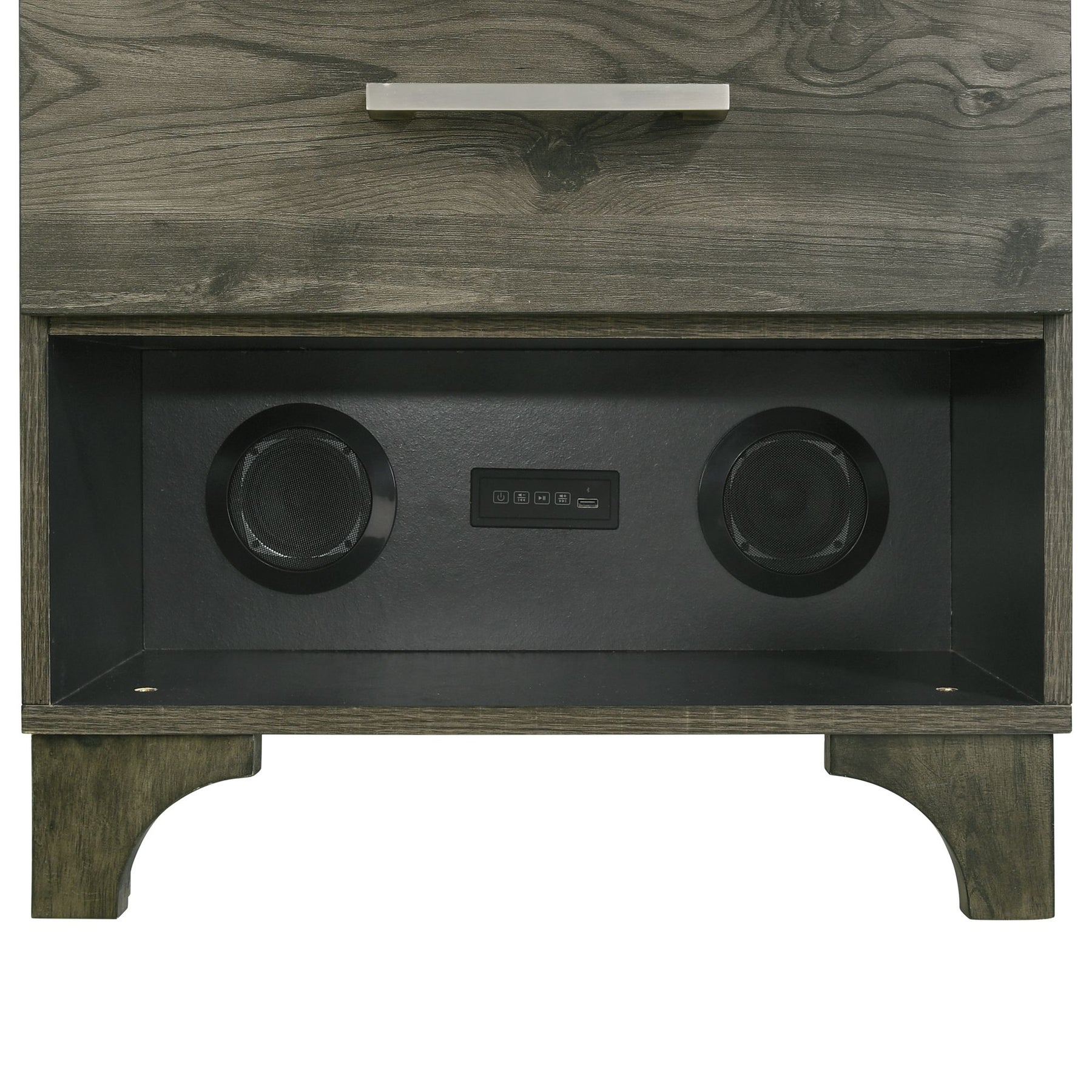 The Zendaya Nightstand is the perfect blend of modern convenience and sleek design. Crafted in a stylish gray wood finish, this nightstand features a spacious drawer with a smooth metal handle for easy access to bedside essentials. The open shelf below houses built-in Bluetooth speakers, allowing you to enjoy high-quality audio right from your nightstand. Whether you’re charging your devices or setting the mood with music, this nightstand adds both functionality and contemporary flair to your bedroom.
