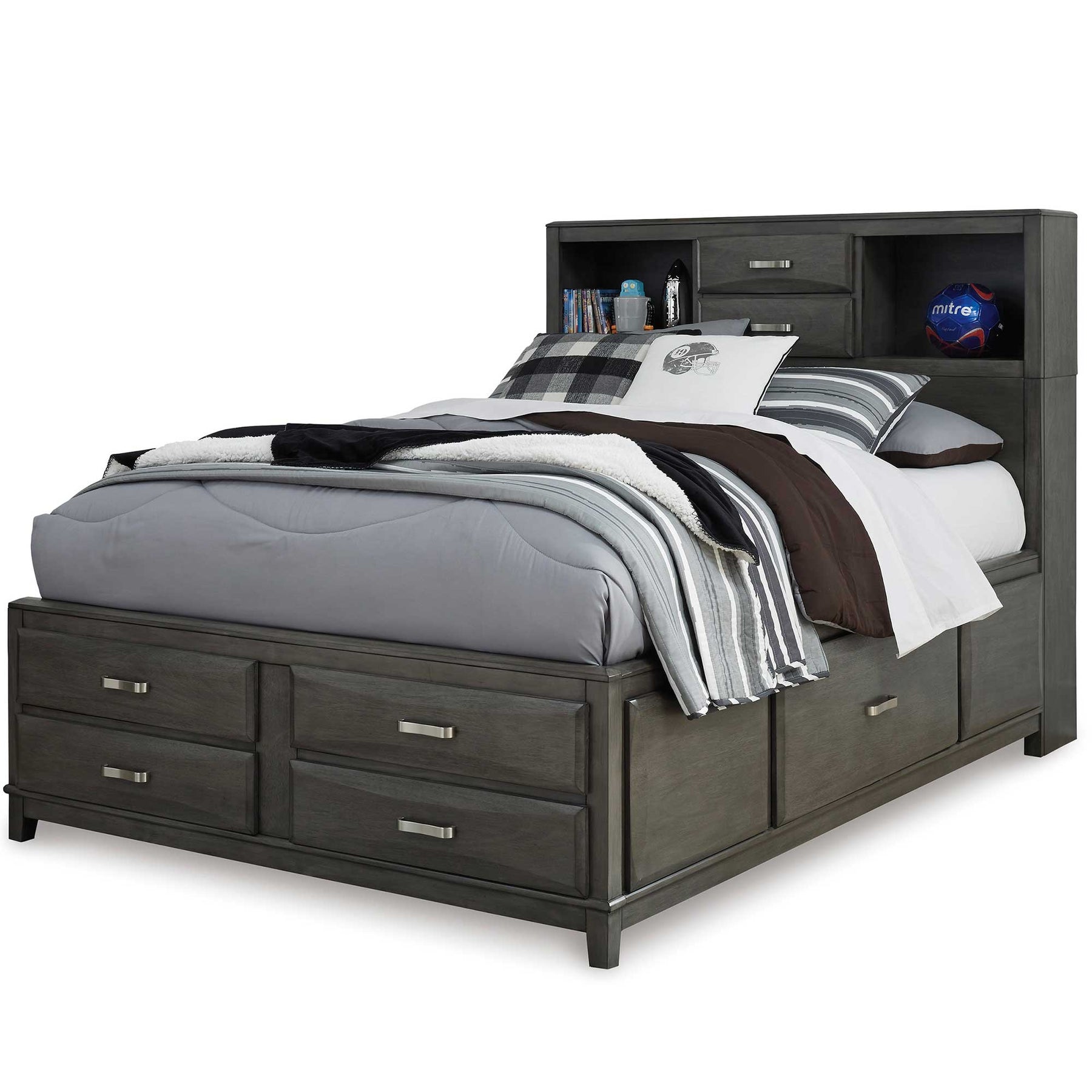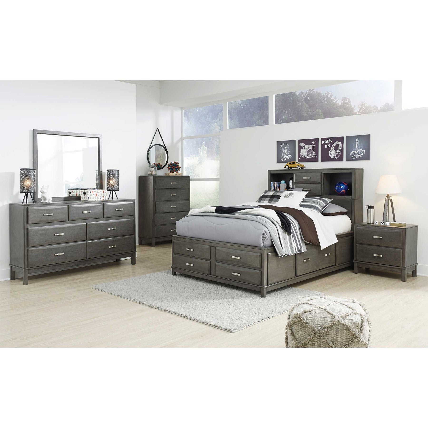 Caitbrook Full Storage Bed with 8 Storage Drawers with Mirrored Dresser