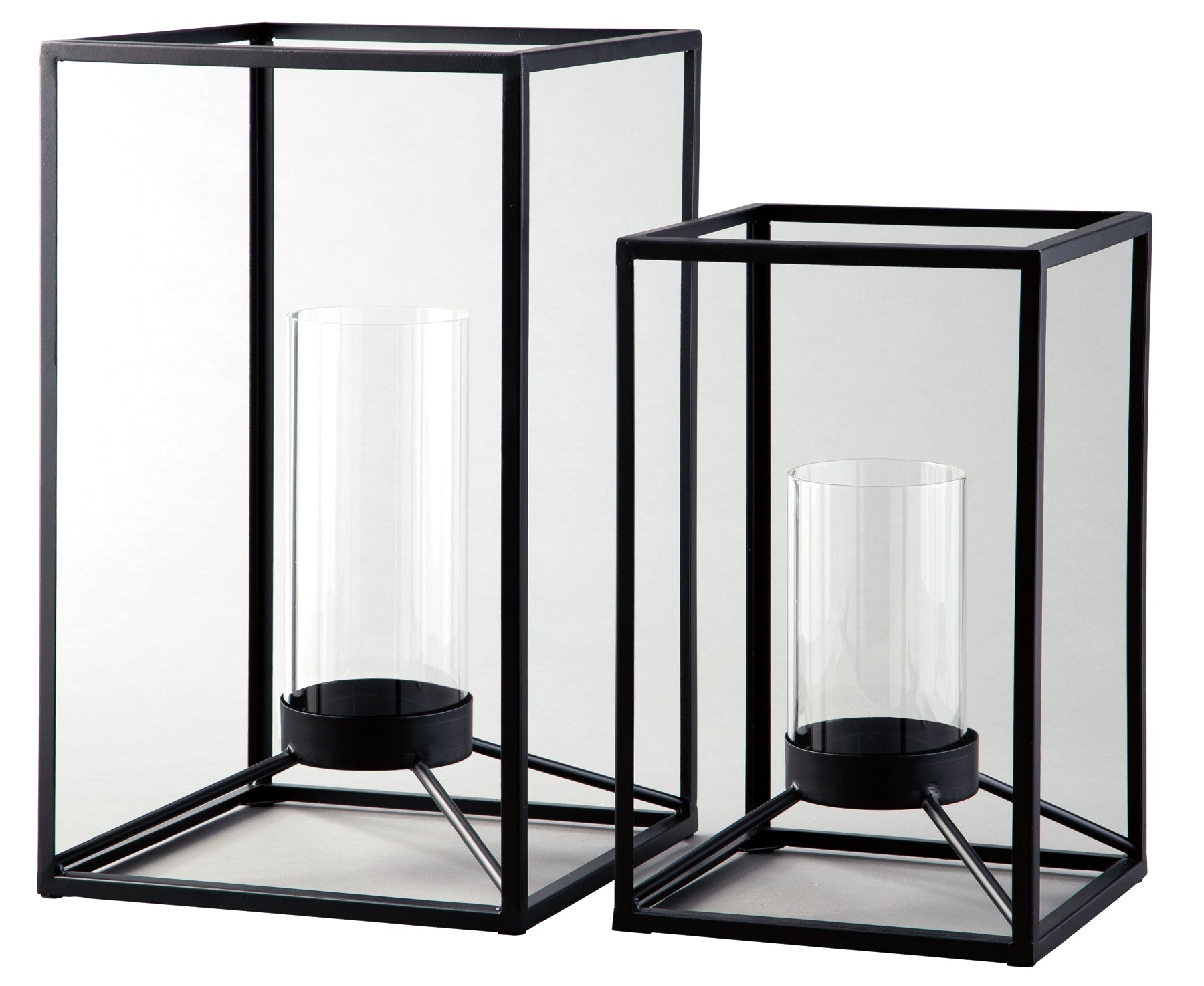 | Details | Includes 2 lanterns (large and small), Made of metal and glass, Each lantern holds a 3” pillar candle (not included), Suitable for indoor/outdoor use, Clean with a soft, dry cloth | |