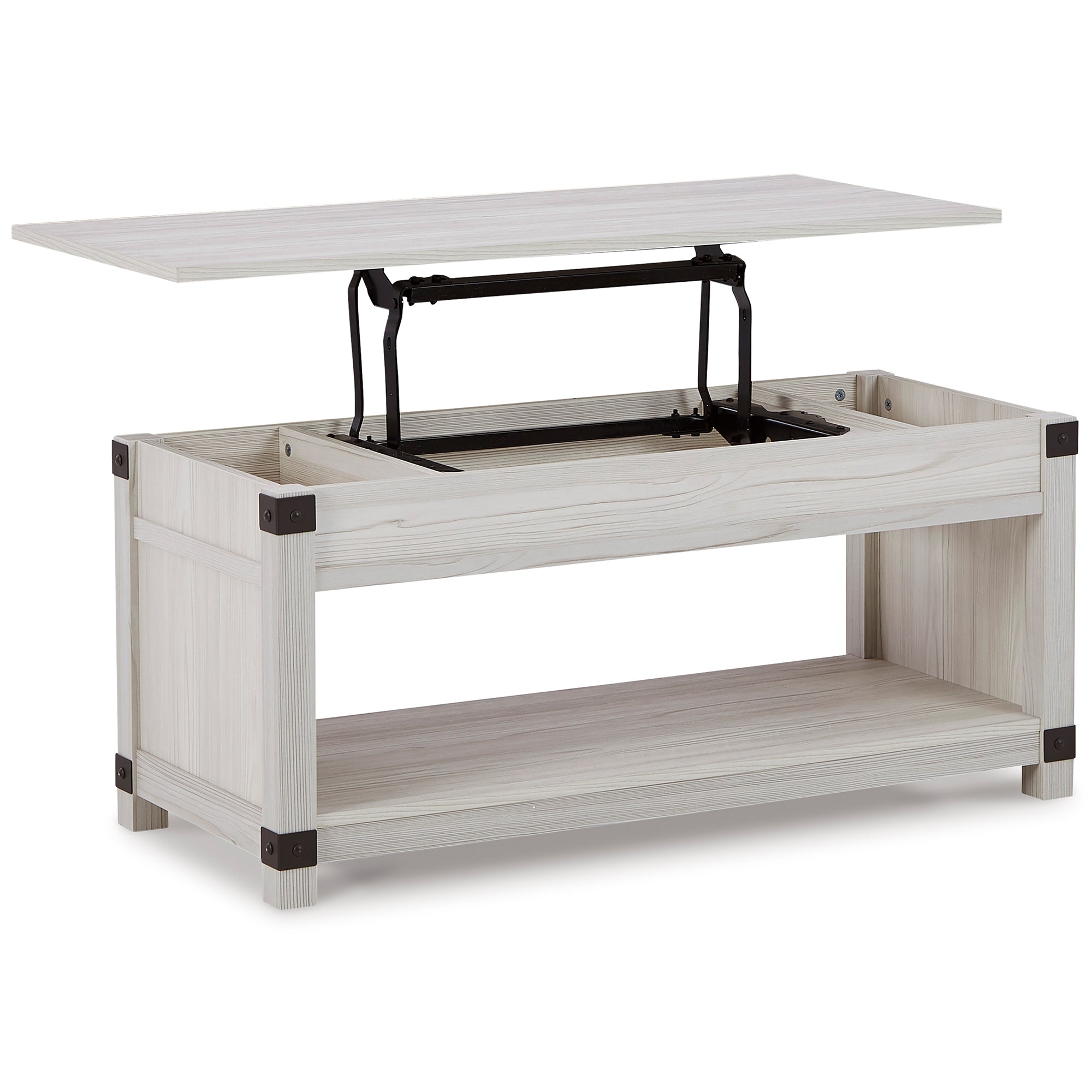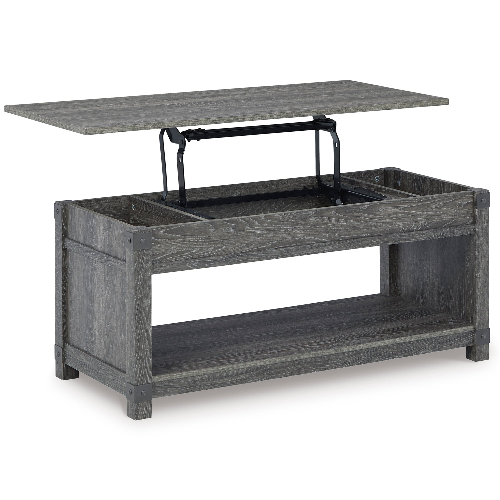 Tailor your choices based on your room's dimensions. Many of our collections incorporate storage, especially beneficial for compact spaces. For instance, our Aldwin Coffee Table incorporates a double-sided hinged top equipped with stay arms, unveiling additional storage. On the other hand, the Bolanburg Coffee Table comes with a handy lift top, seamlessly converting into a makeshift desk.
