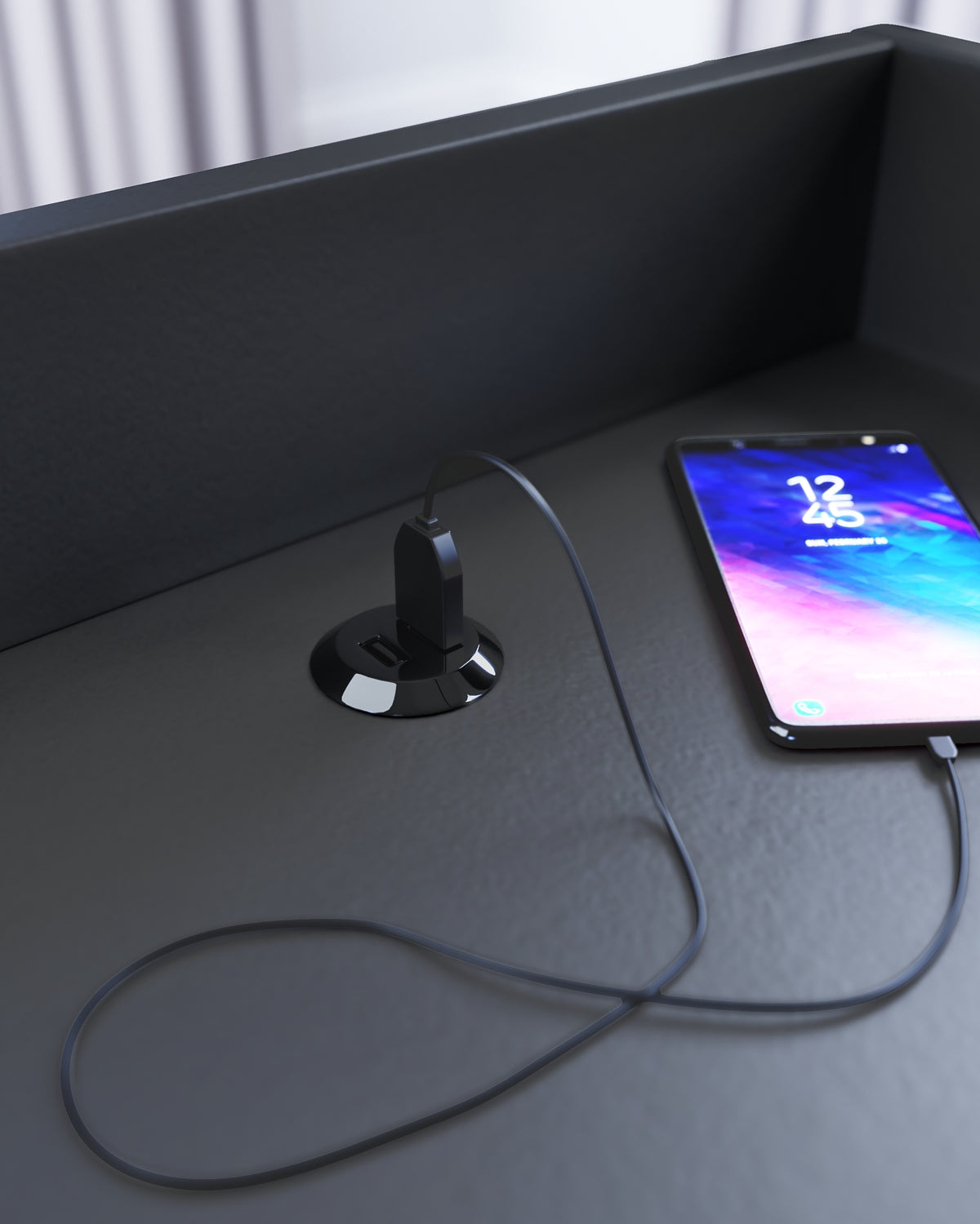 | Details | Made of wood, engineered wood and veneer, Light tan finish, Gallery rail top, 1 fixed shelf, 2 USB charging ports; power cord included, Assembly required | |