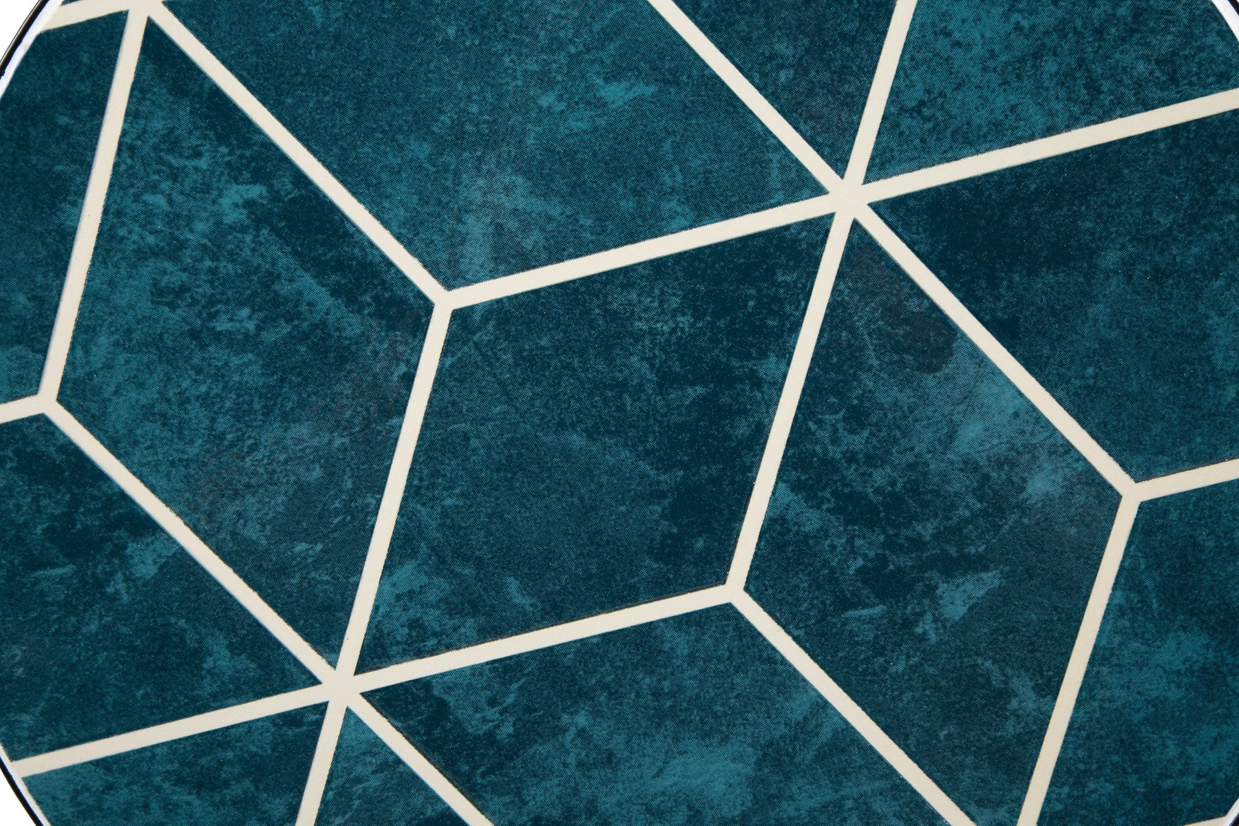 | Details | Set of 2, Made with ceramic tile and metal, Two-tone teal glaze, Base with black finish, Diamond pattern top, Nesting design, Assembly required | |