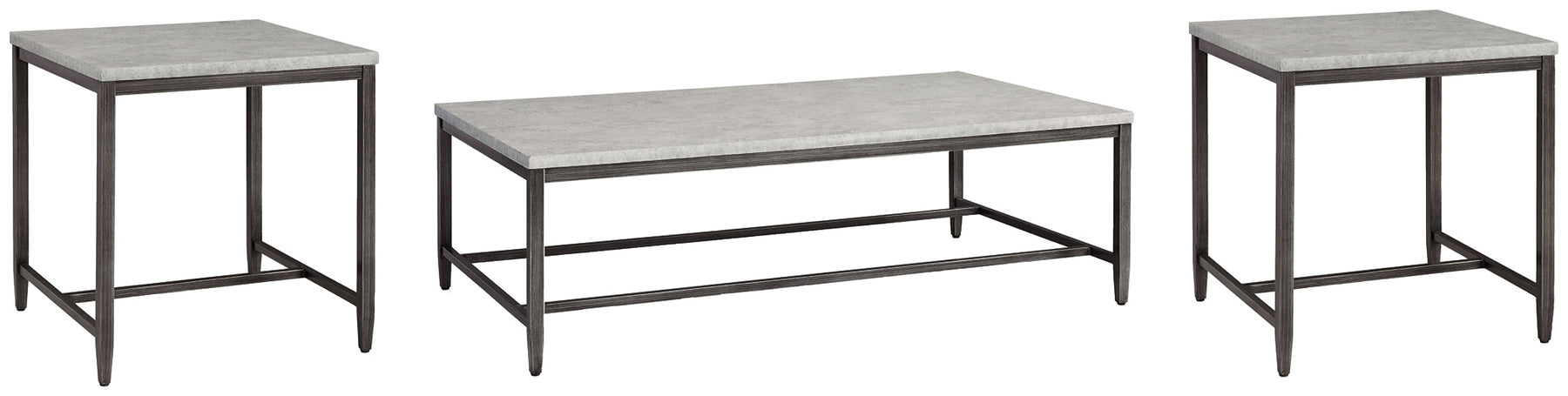 | Details | Includes coffee table and 2 end tables, Faux concrete melamine top, Metal base in dark pewter-tone finish, Assembly required | |