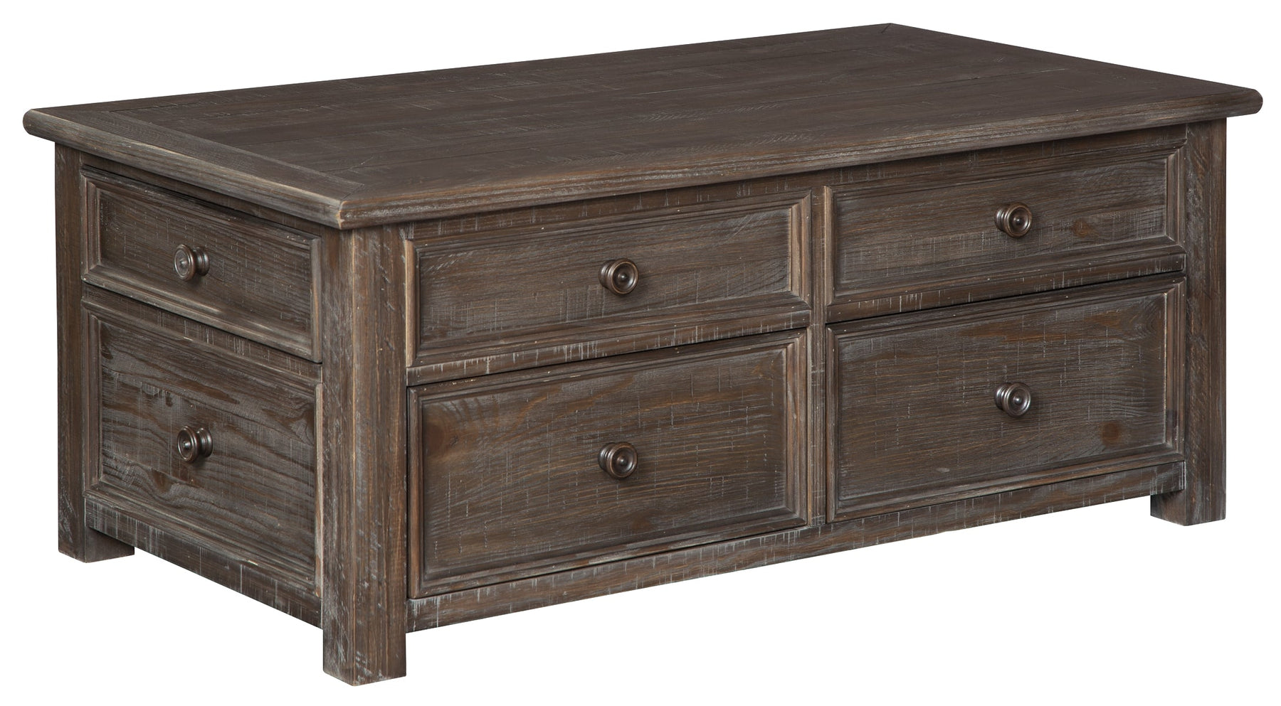 | Details | 3-piece set: includes coffee table and 2 end tables, Made of pine wood, veneers and engineered wood, Distressed finish, Coffee table with spring-lift top and 4 smooth-gliding drawers with dovetail construction, Media cabinet with single shelf storage; pull-out tray with 2 cup holders and remote control rest; 2 electrical outlets and USB charging ports, Power cord included; UL Listed, No assembly required | |
