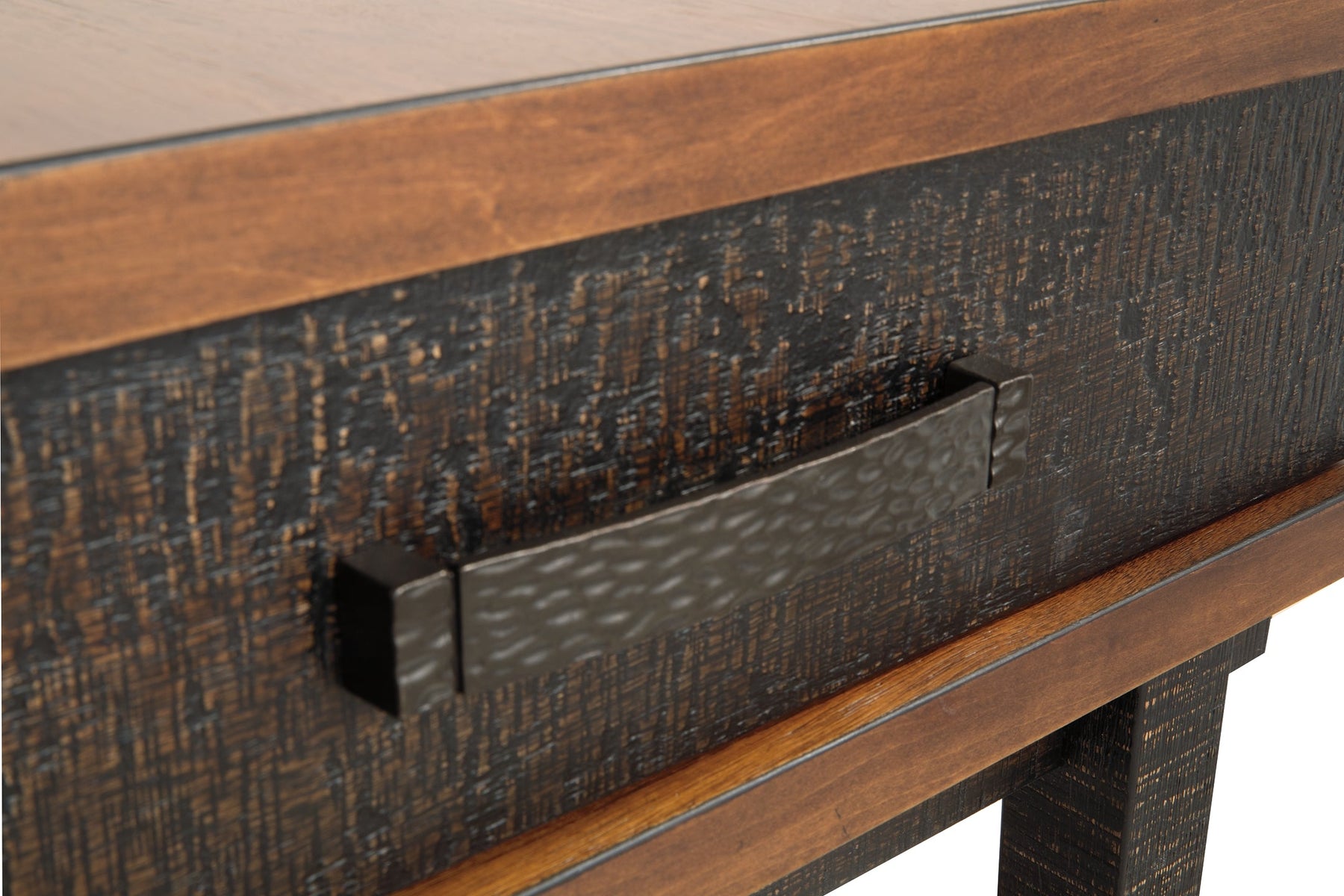 | Details | Made of veneers, wood and engineered wood, Two-tone treatment, Heavily textured distressing, Smooth-gliding drawer, Hammered-style metal pull, Assembly required | |