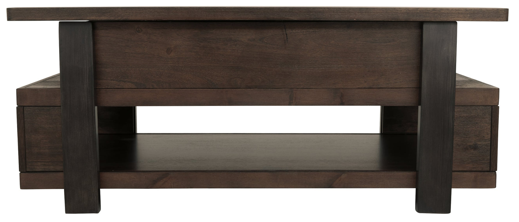 | Details | Made of veneers, wood and engineered wood, Grayish brown distressed finish with dark brown finished legs, Spring-lift top, 2 side storage compartments, Open lower shelf, Assembly required | |