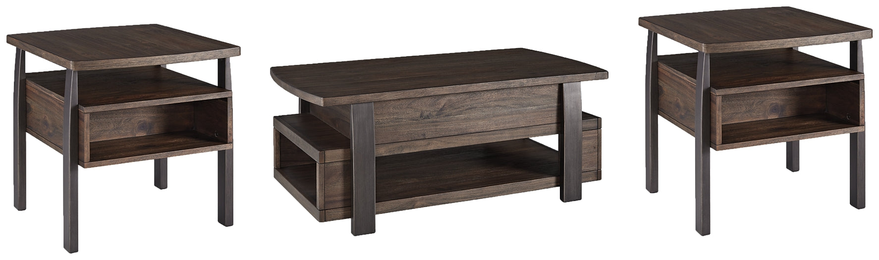 Tailor your choices based on your room's dimensions. Many of our collections incorporate storage, especially beneficial for compact spaces. For instance, our Aldwin Coffee Table incorporates a double-sided hinged top equipped with stay arms, unveiling additional storage. On the other hand, the Bolanburg Coffee Table comes with a handy lift top, seamlessly converting into a makeshift desk.