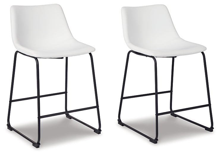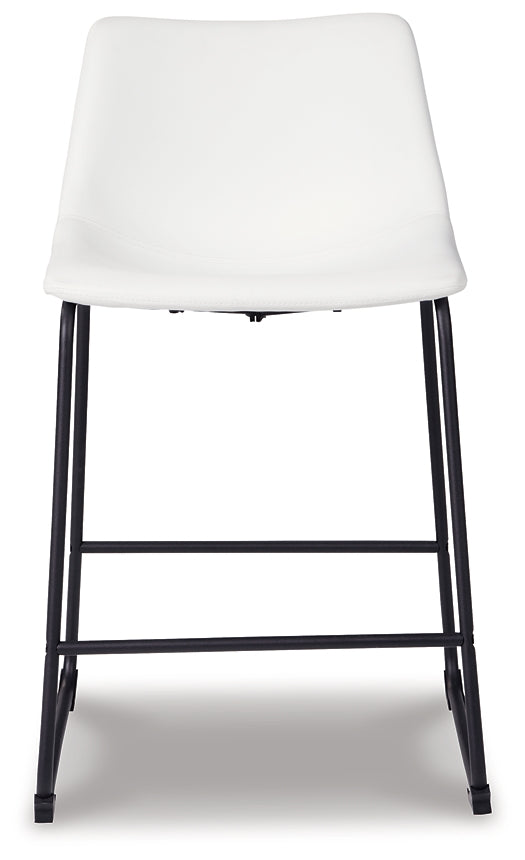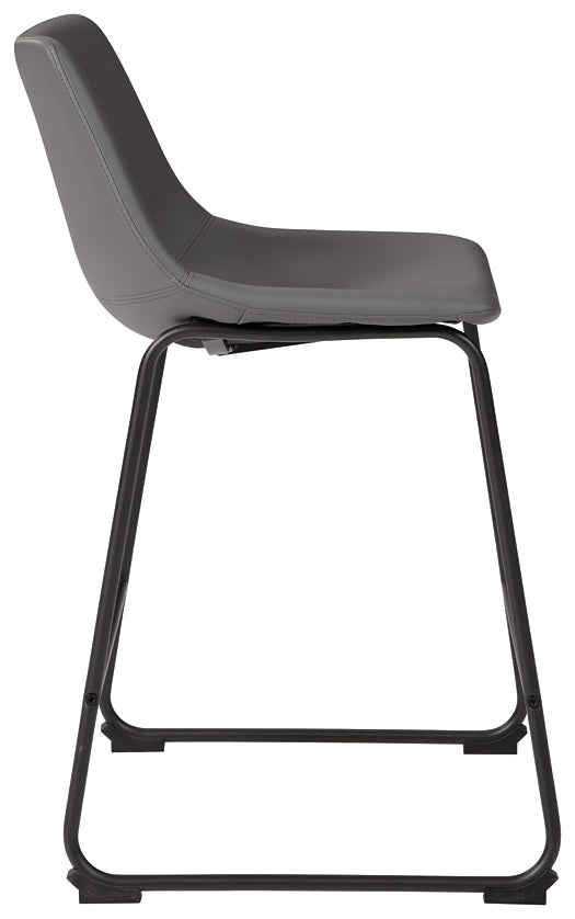 With its distinctive contoured bucket seat and tubular metal base, this upholstered bar stool serves up a fresh twist on mid-century inspired style. Practical faux leather has a charmingly vintage tone. What a timeless look for eat-in kitchens and casually cool dining rooms.