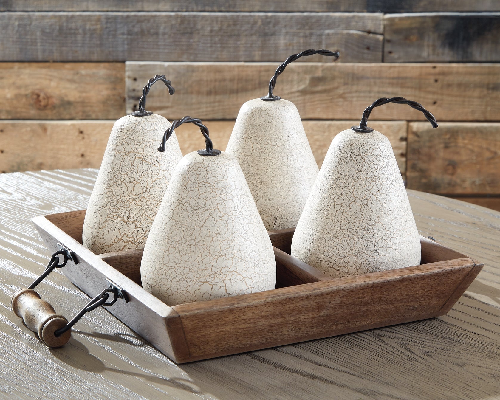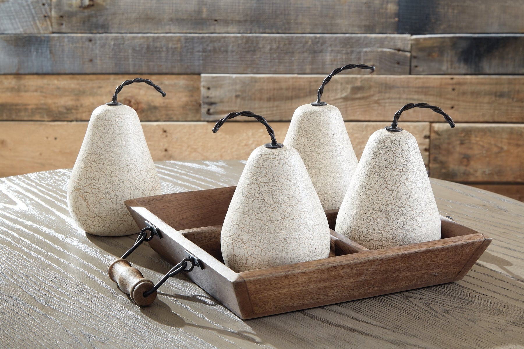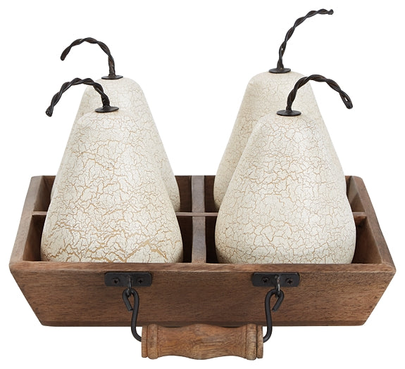| Details | Made of metal, wood and composite material, 5-piece set includes 4 fruits and 1 wood tray | |