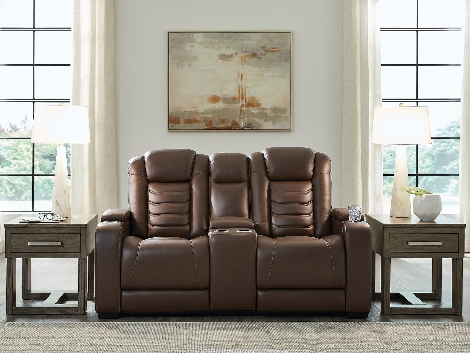 Talk about having it all. This power reclining loveseat with console entices with a luxe look and fabulous feel—and satisfies with high-end style at an affordable price. Sleek and stylish, this impressive seating offers the convenience of one-touch power controls along with wireless and USB charging. It's everything you need, right at your fingertips, to take your comfort to the next level.