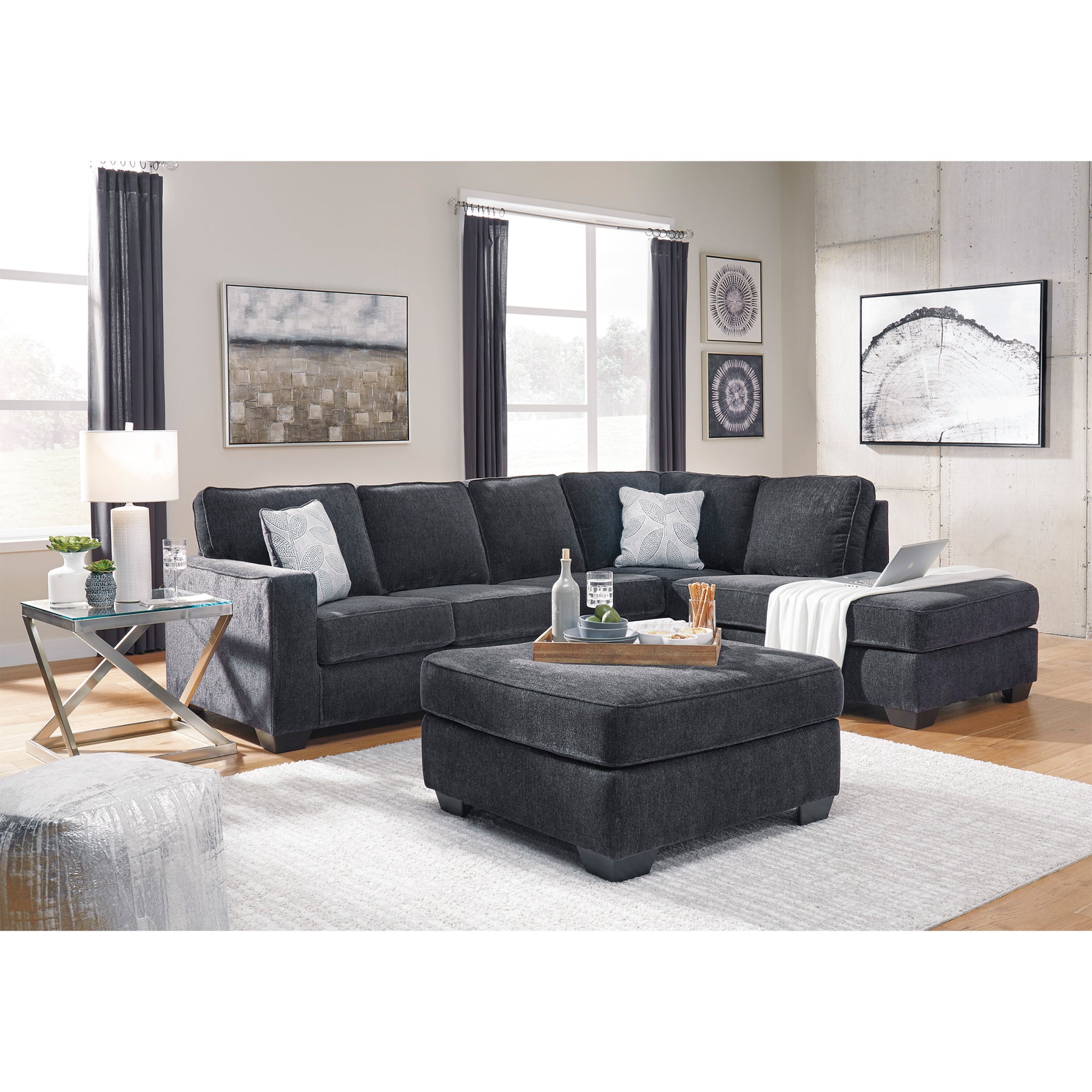 If style is the question, then this oversized accent ottoman is the answer. Clean-lined profile is beautifully contemporary. Plush chenille fabric and plump cushioning make it so easy to comfortably kick up your heels. Richly neutral hue complements a variety of decor.