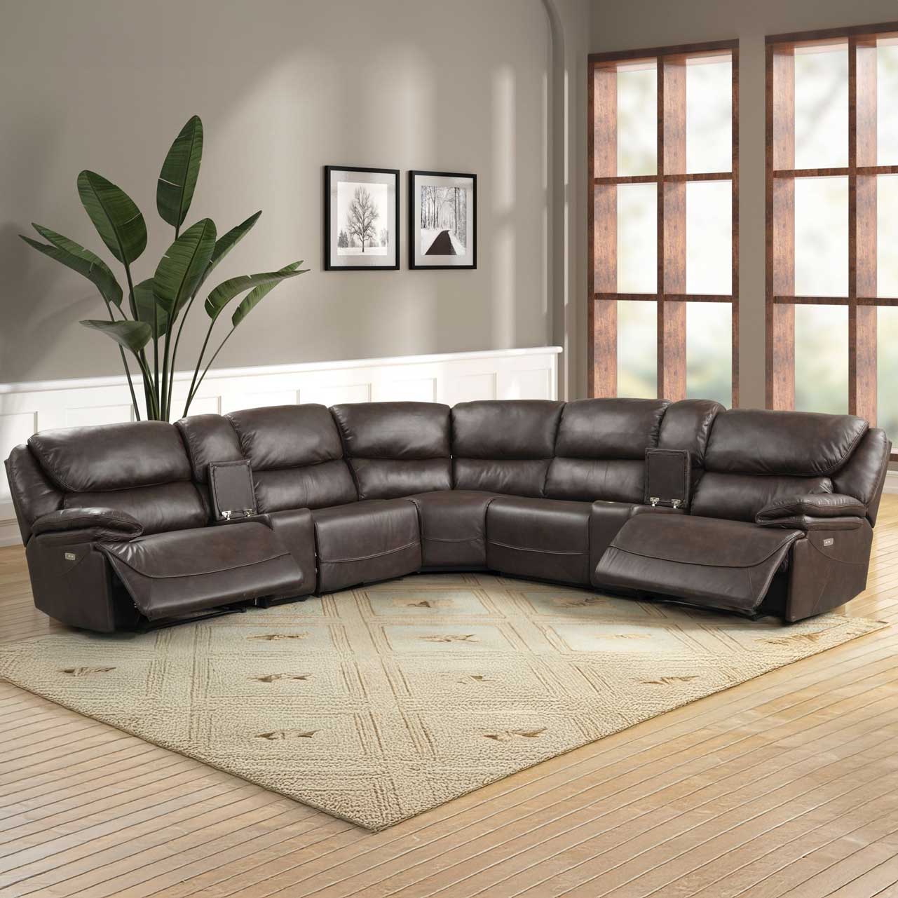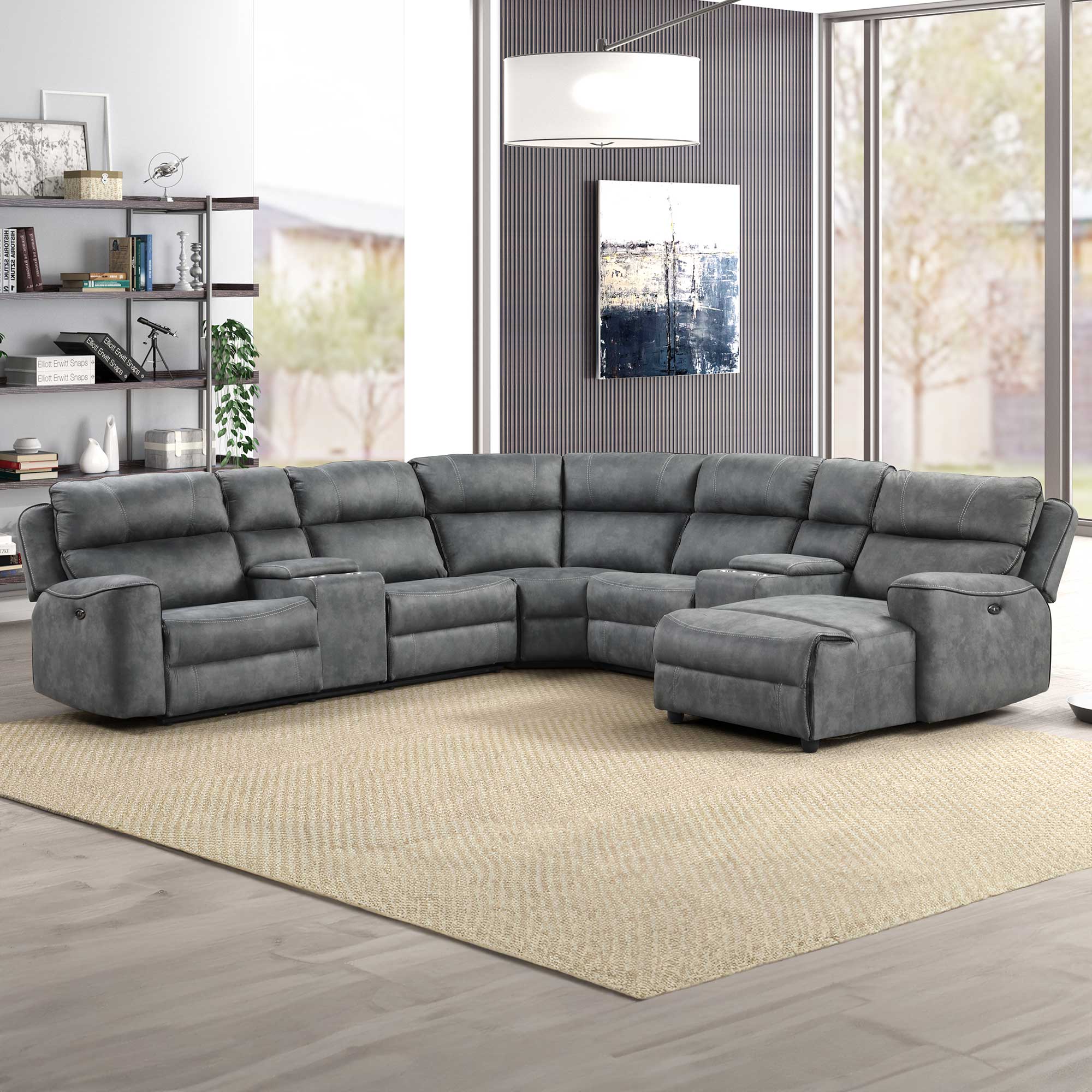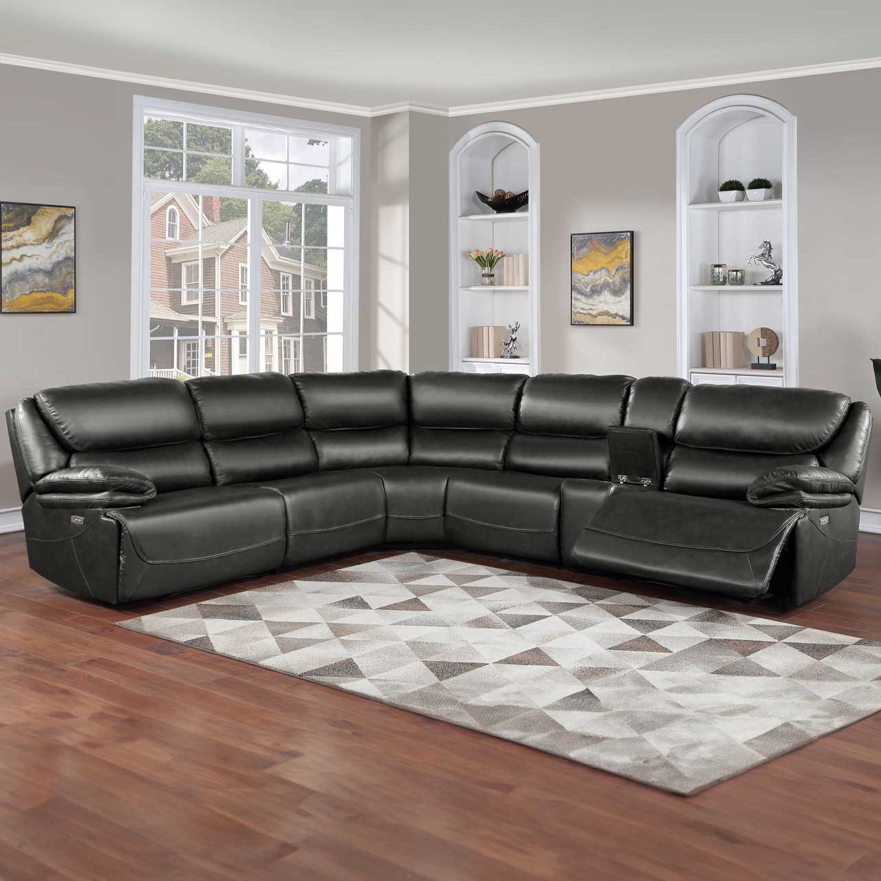 • Reclining sectionals: Maximize comfort for family and guests with reclining sectionals, ranging from contemporary designs with chaises to five-piece faux leather arrangements with eye-catching diamond stitching.