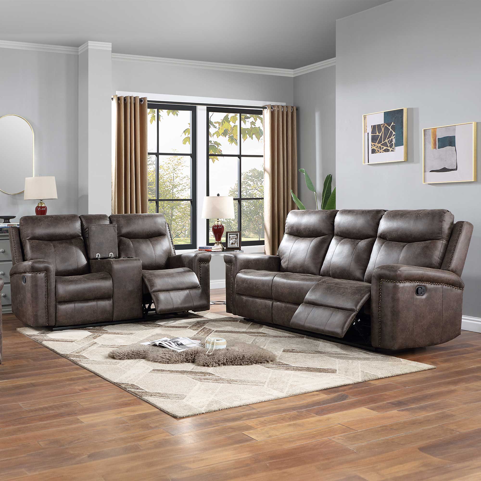 • Reclining loveseats: Perfect for couples, our reclining loveseats include pull-tab footrests and designs with adjustable power controls and headrests. Some models feature center consoles with cup holders and hidden storage.