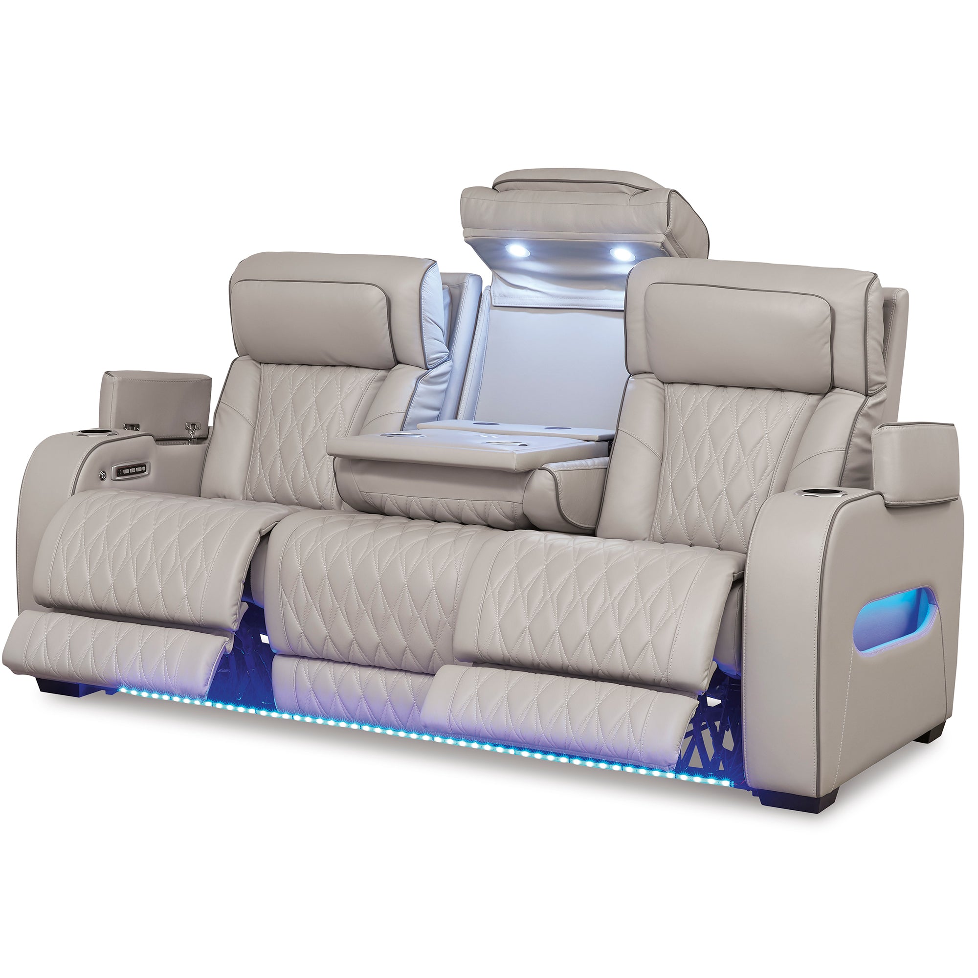• Reclining sofas and couches: Elevate your leisure time with reclining sofas and couches, complete with plush armrests, intuitive one-touch power controls, and adjustable headrests. Some even offer a fold-forward stationary middle seat that reveals a tabletop with cup holders, overhead lighting, and USB charging ports.