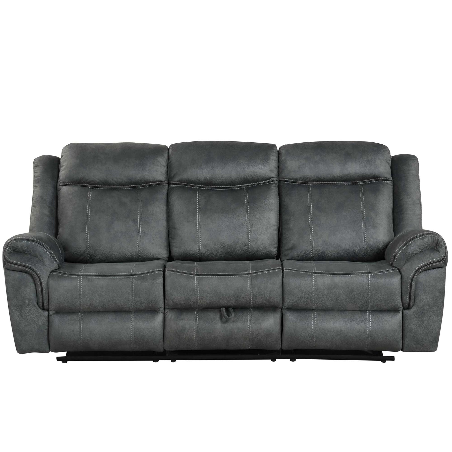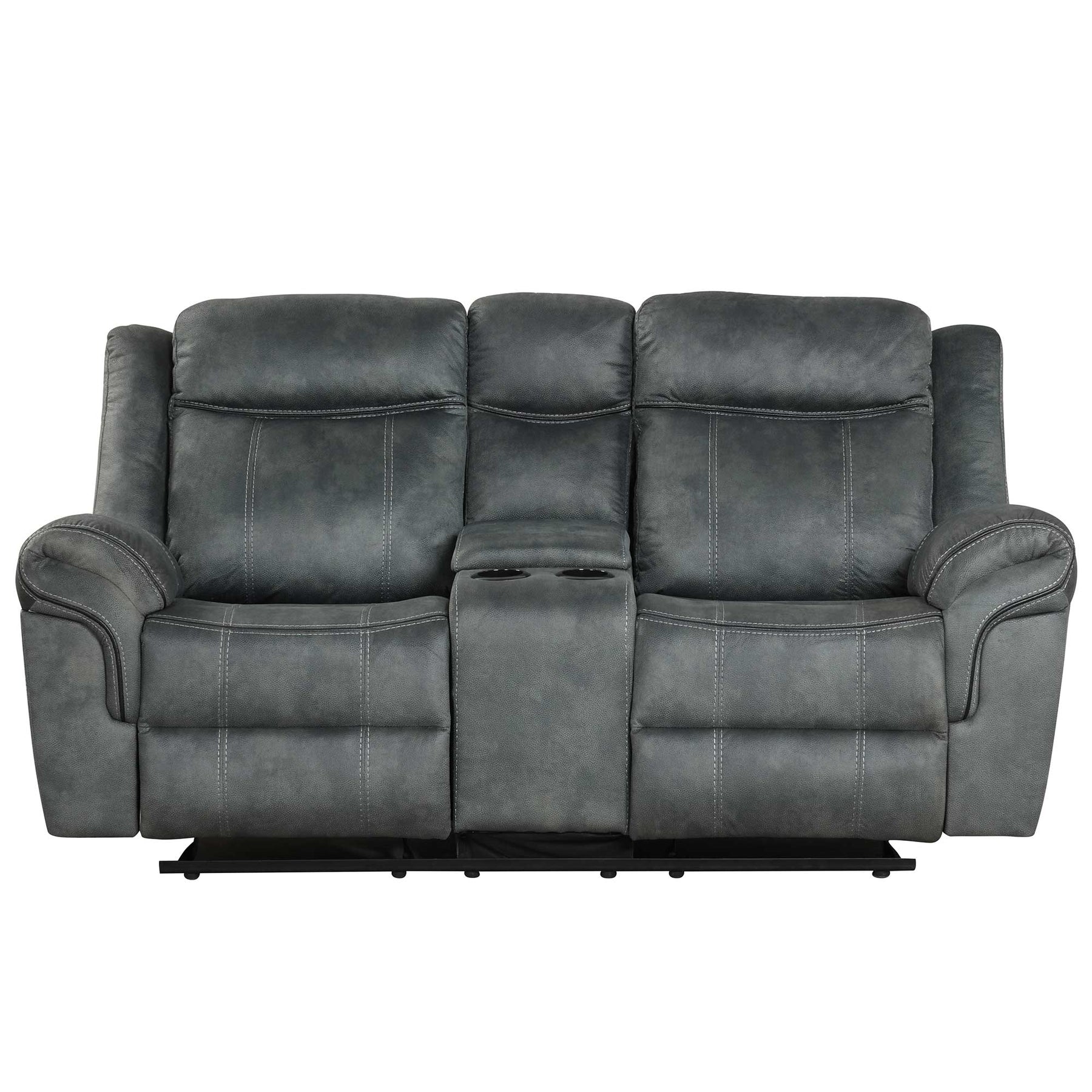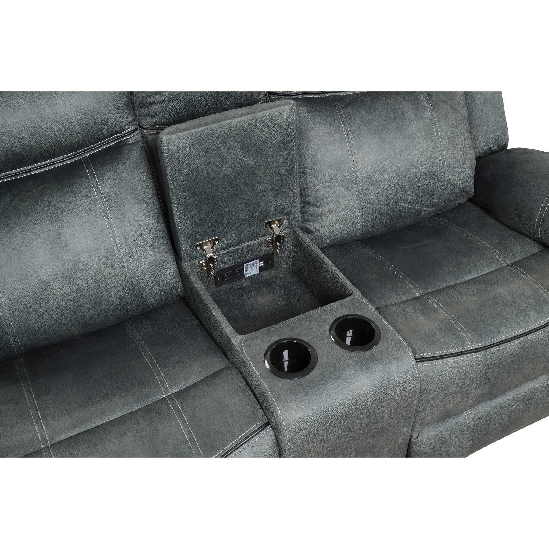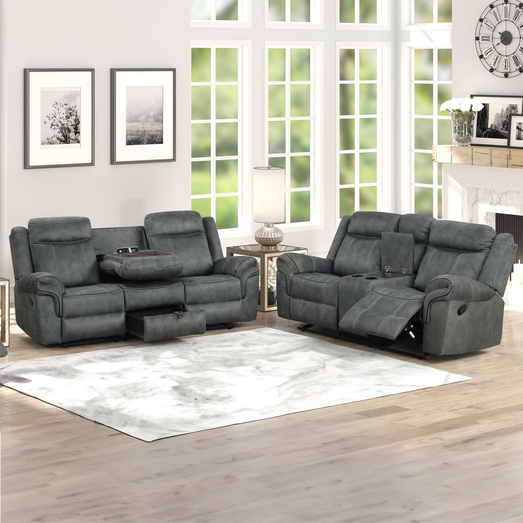 The Darvin Manual Reclining Sofa and Loveseat Set offers the perfect blend of comfort and functionality. Upholstered in soft grey fabric with elegant contrast stitching, this set features plush cushioning and smooth manual reclining mechanisms for a relaxing experience. The loveseat includes a convenient center console with built-in cup holders and hidden storage, while the sofa boasts a pull-out storage drawer and a drop-down center table with power outlets and USB ports. Whether for movie nights or everyday lounging, this set is designed to elevate your living space with style and convenience.