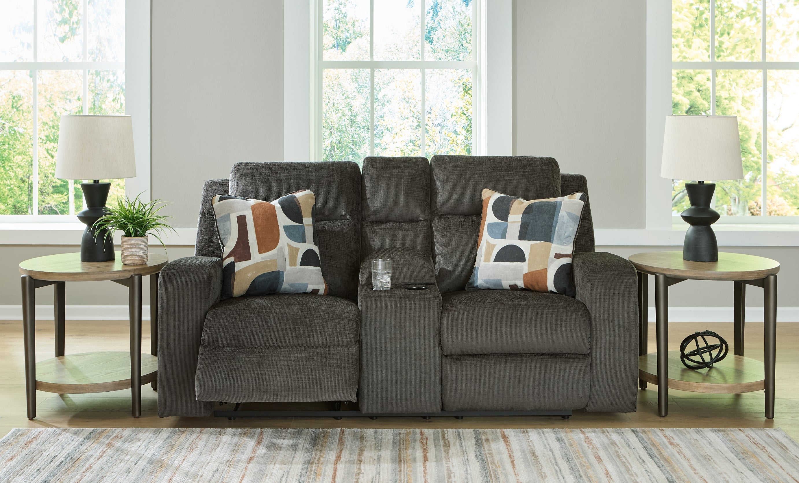Reclining loveseats: Perfect for couples, our reclining loveseats include pull-tab footrests and designs with adjustable power controls and headrests. Some models feature center consoles with cup holders and hidden storage.