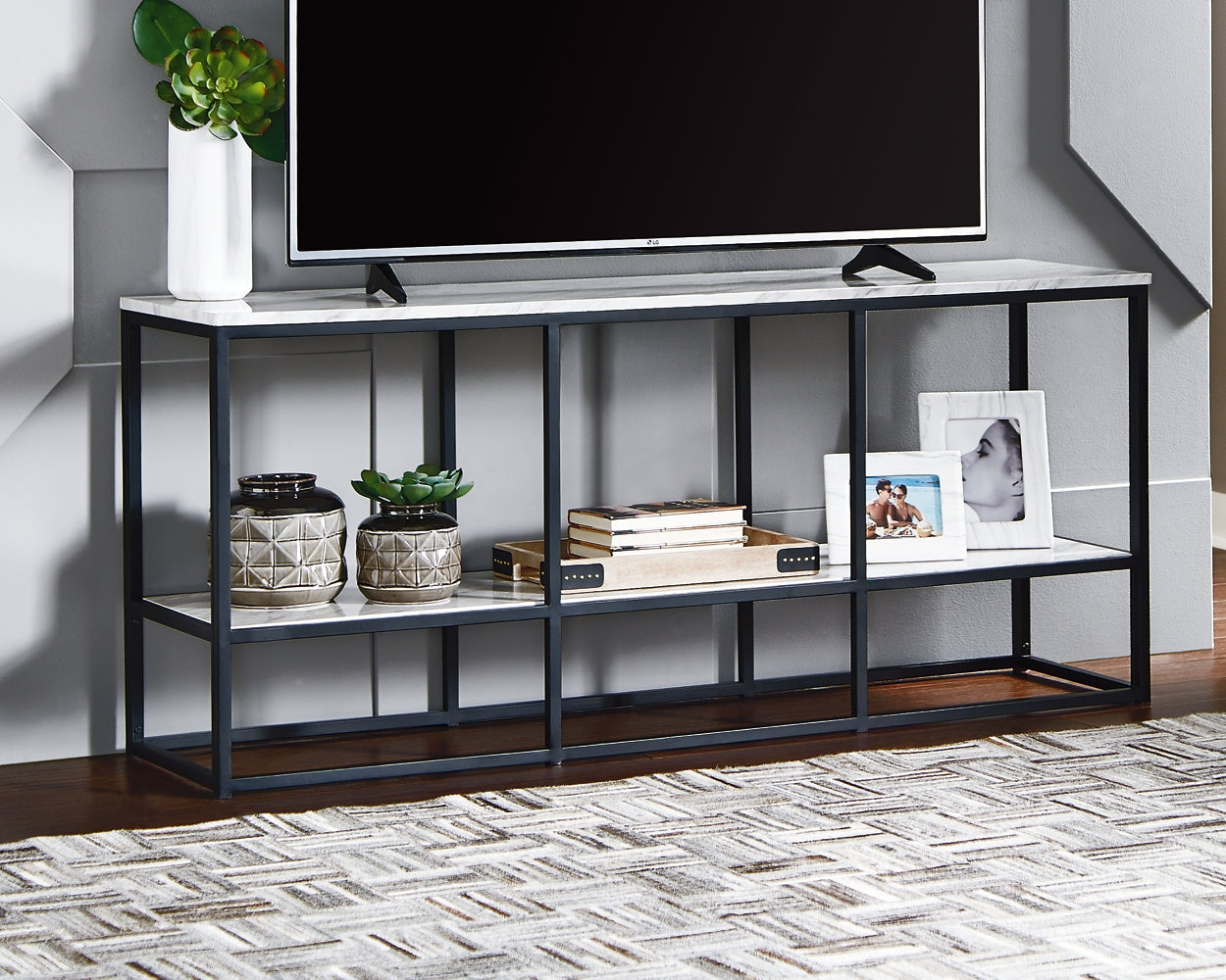 | Details | Top and shelf made of decorative replicated Carrara marble laminate over engineered wood, Metal frame, Assembly required | |