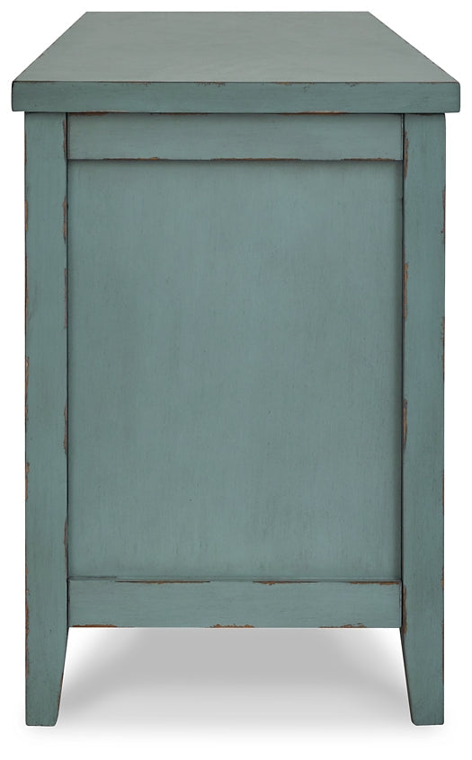 Bring the vintage casual vibe you love to the living room with this TV stand. A stylish storage solution in a teal finish, this charming piece completes your entertainment area with ease. Open shelves and the included handwoven baskets provide an effortlessly beautiful look with endless possibilities.