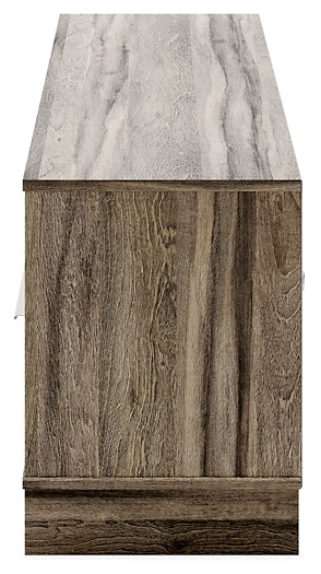 | Details | Made with engineered wood (MDF/particleboard) and decorative laminate, Weathered brown finish over replicated oak grain with authentic touch, Drawer-length handles with brushed light champagne-colored finish, 2 smooth-gliding drawers, 2 open cubbies, Cutouts for wire management, Assembly required | |