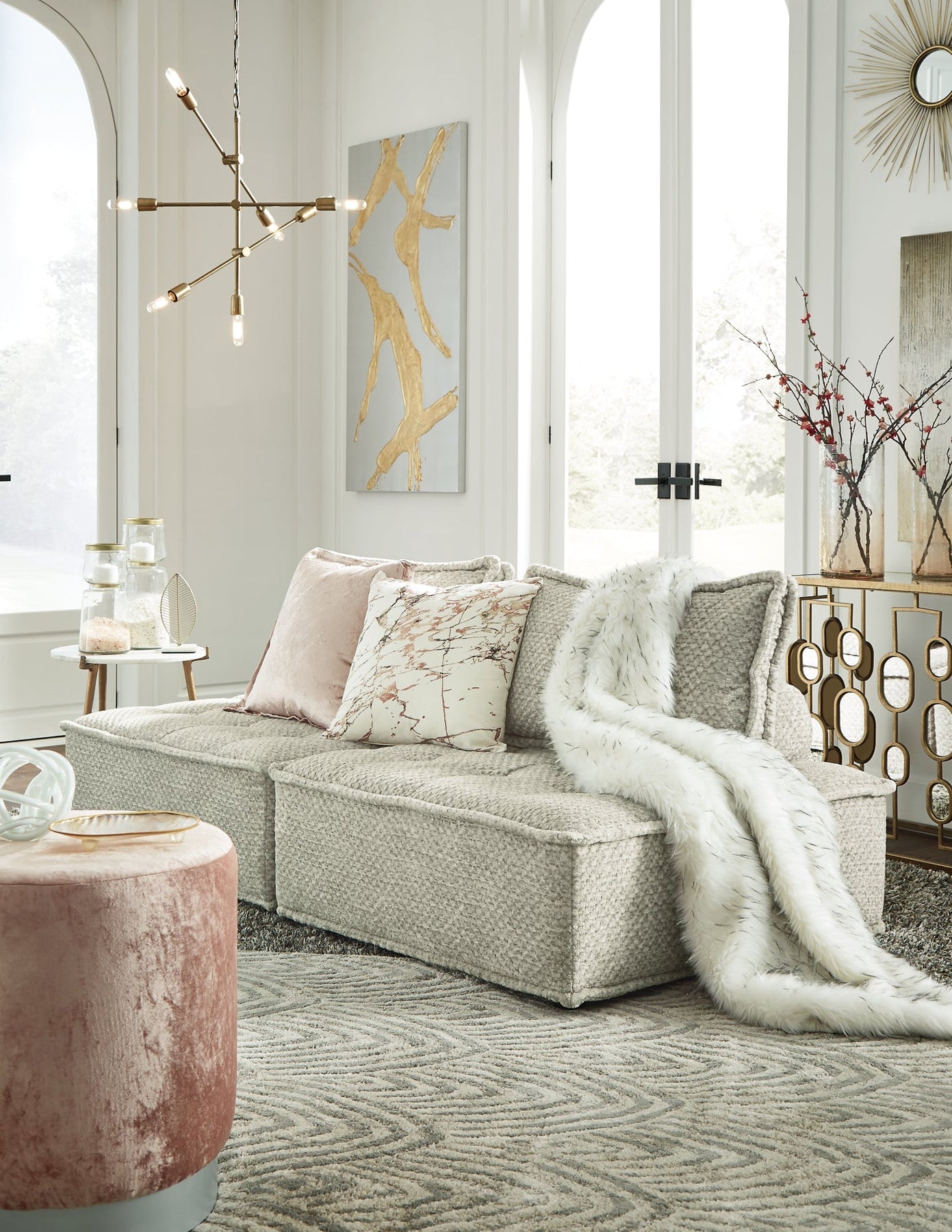 | Details | Includes 2 modular accent chairs, Polyester upholstery, Pillow and bolster with non-slip decking, Seat cushion with non-slip feet, Assembly required | |