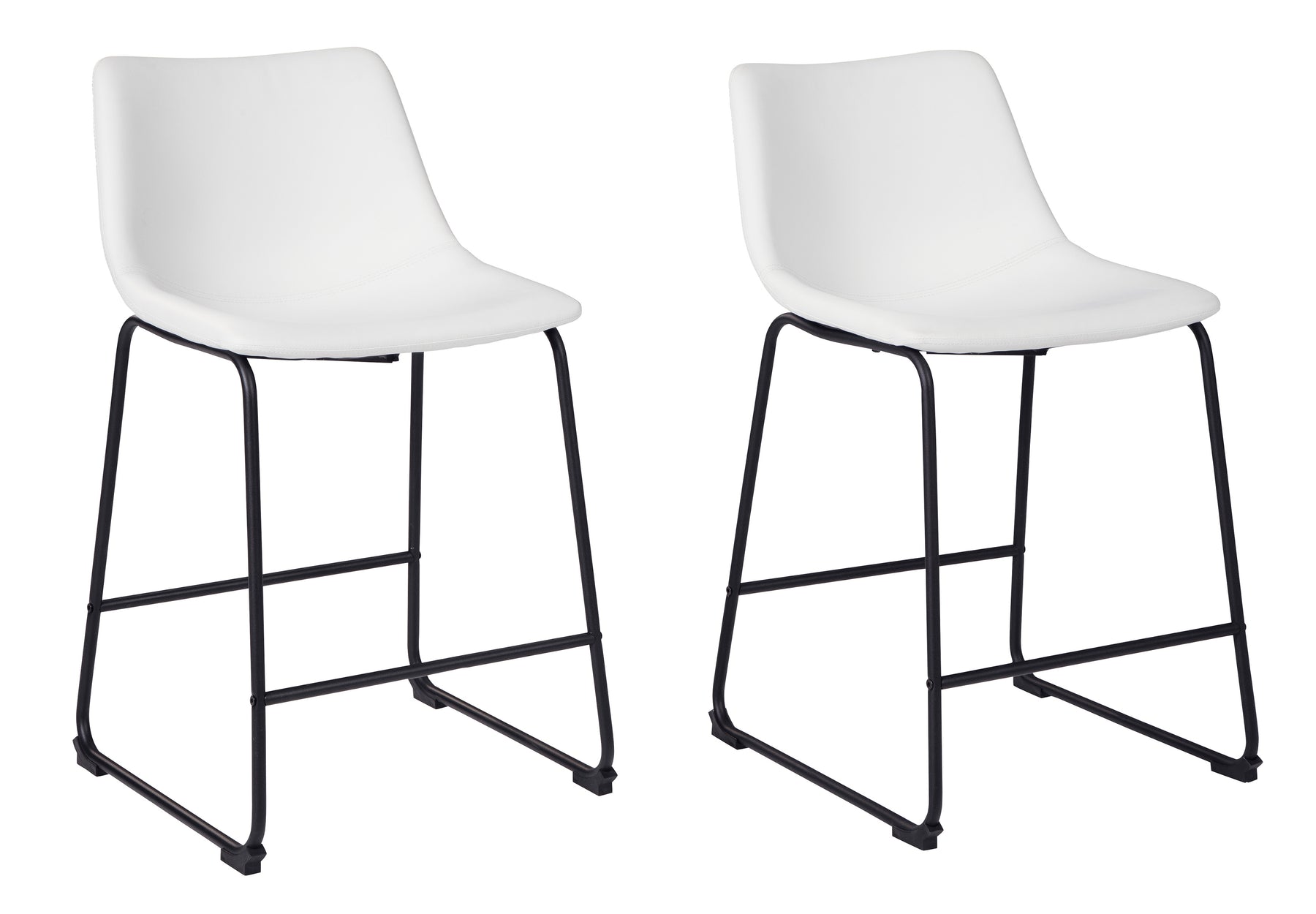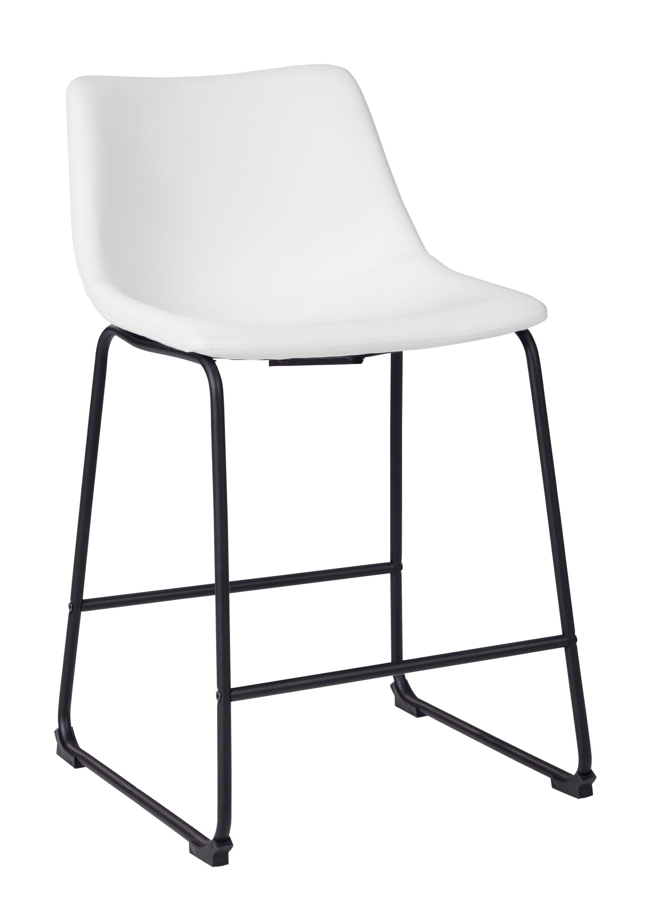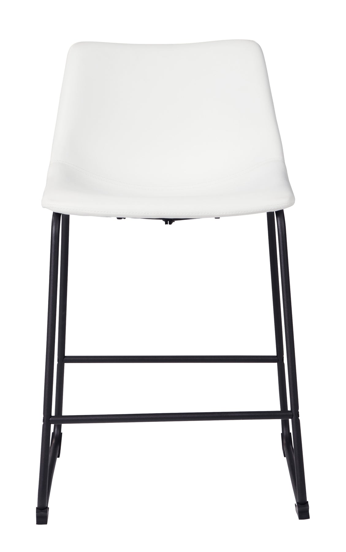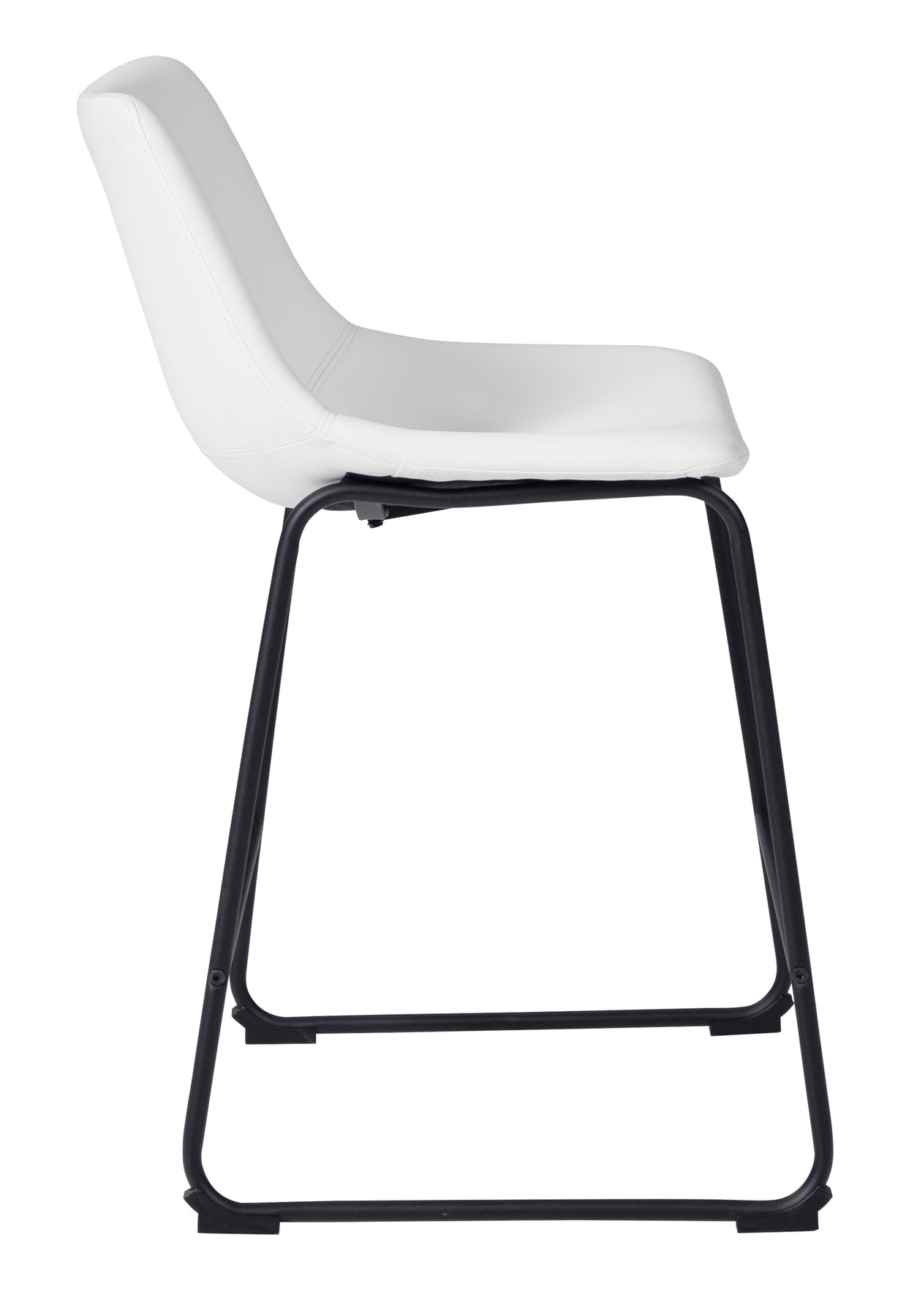 With its distinctive contoured bucket seat and tubular metal base, this bar stool serves up a fresh twist on mid-century inspired style. Contrasting white faux leather upholstery adds to the aesthetic. What a timeless look for eat-in kitchens and casually cool dining rooms.