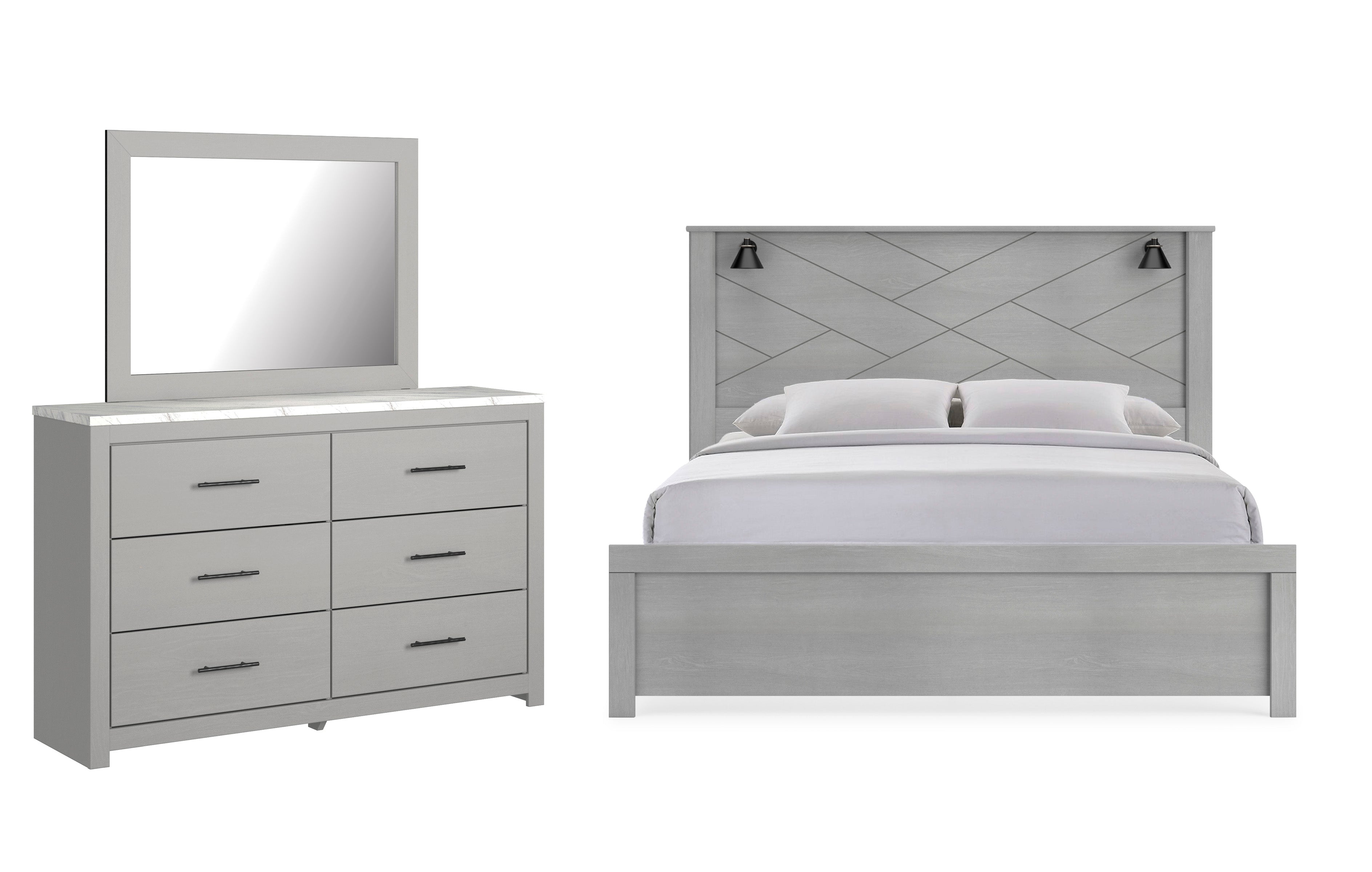 Cambeck Twin Panel Bed with Mirrored Dresser