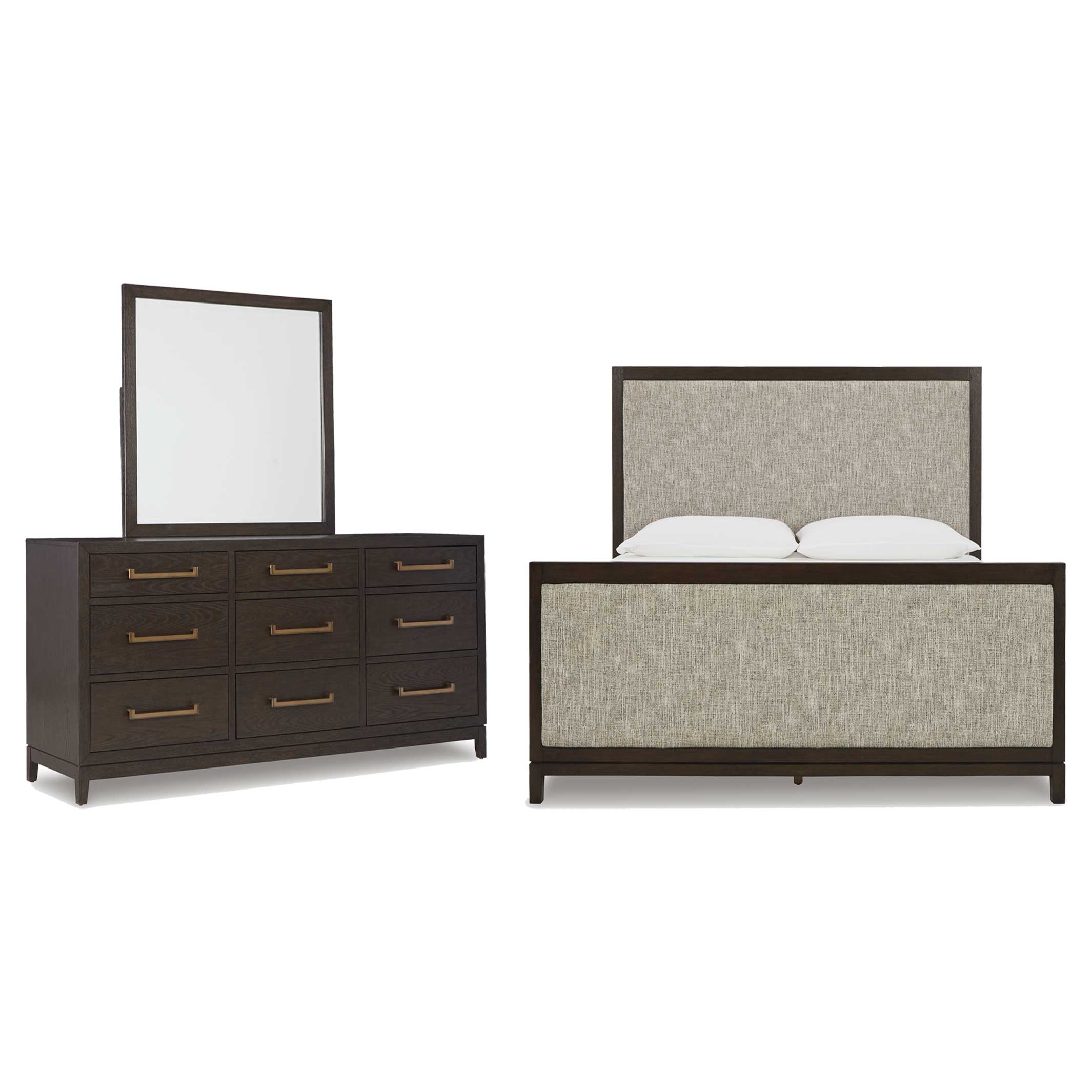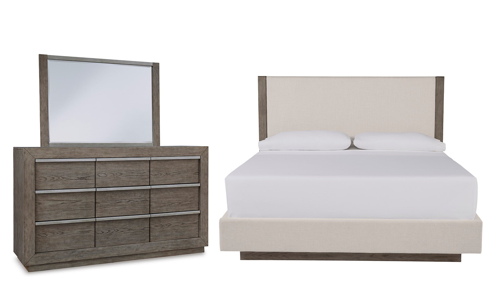 Charmond King Upholstered Sleigh Bed with Mirrored Dresser