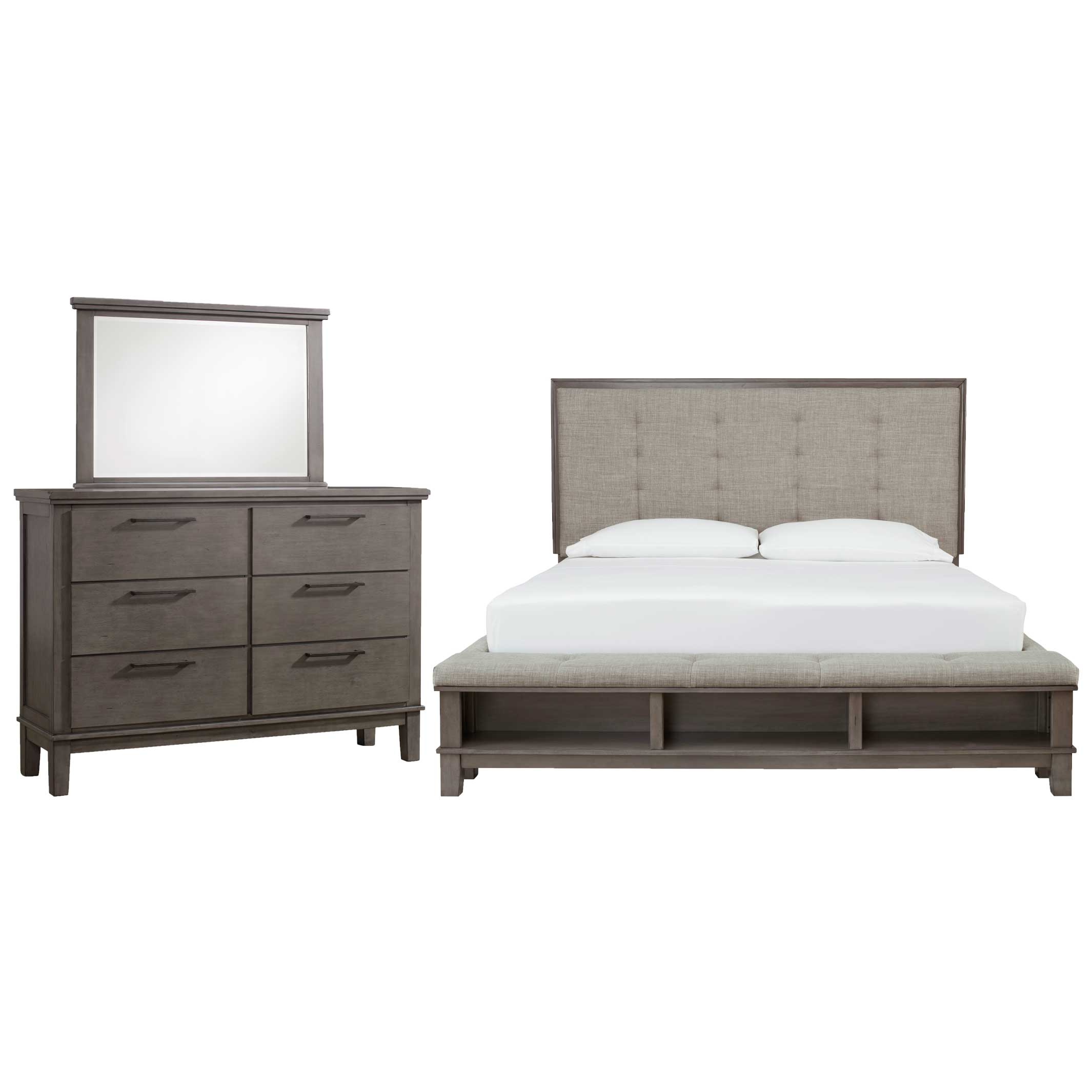 Hallanden King Panel Bed with Storage with Mirrored Dresser