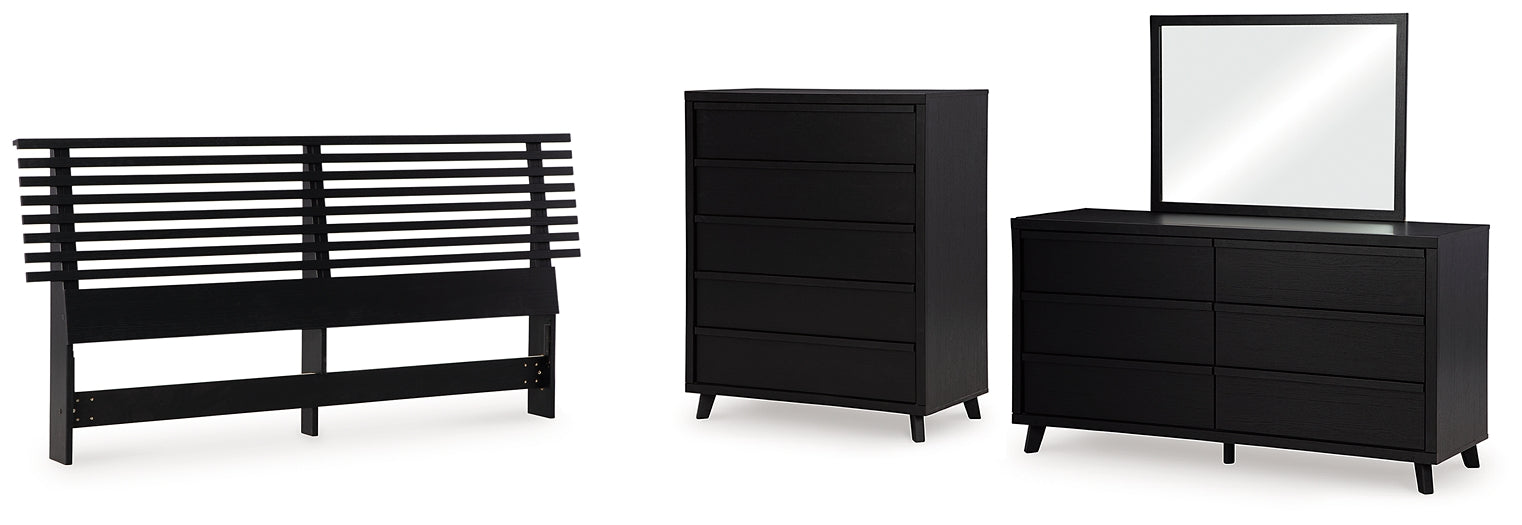Vessalli King Panel Headboard with Mirrored Dresser