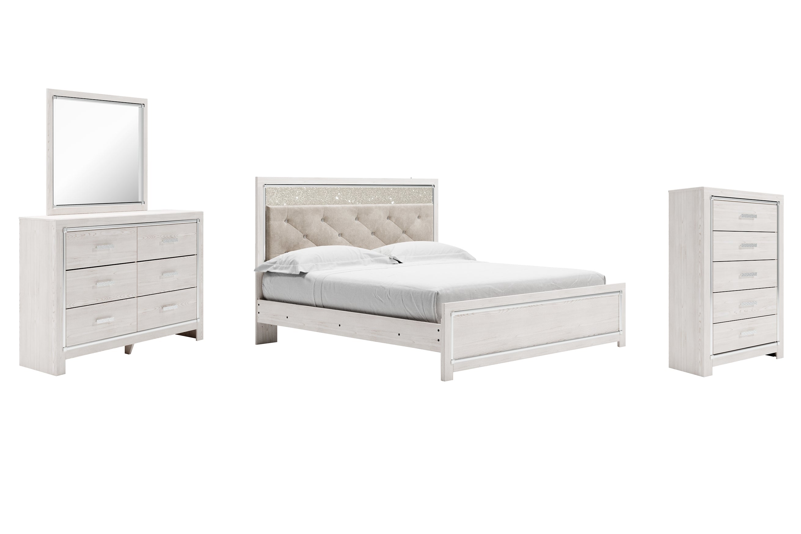 Altyra King Panel Bed with Mirrored Dresser and Chest