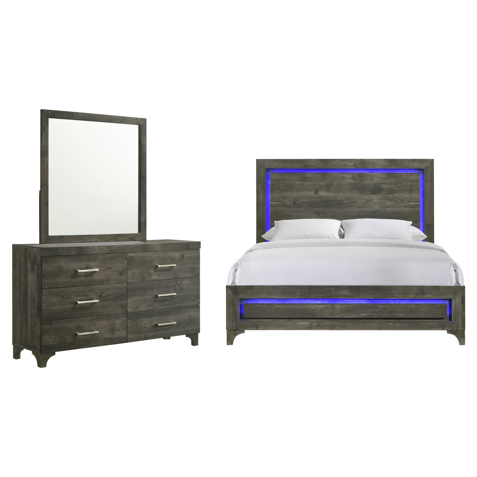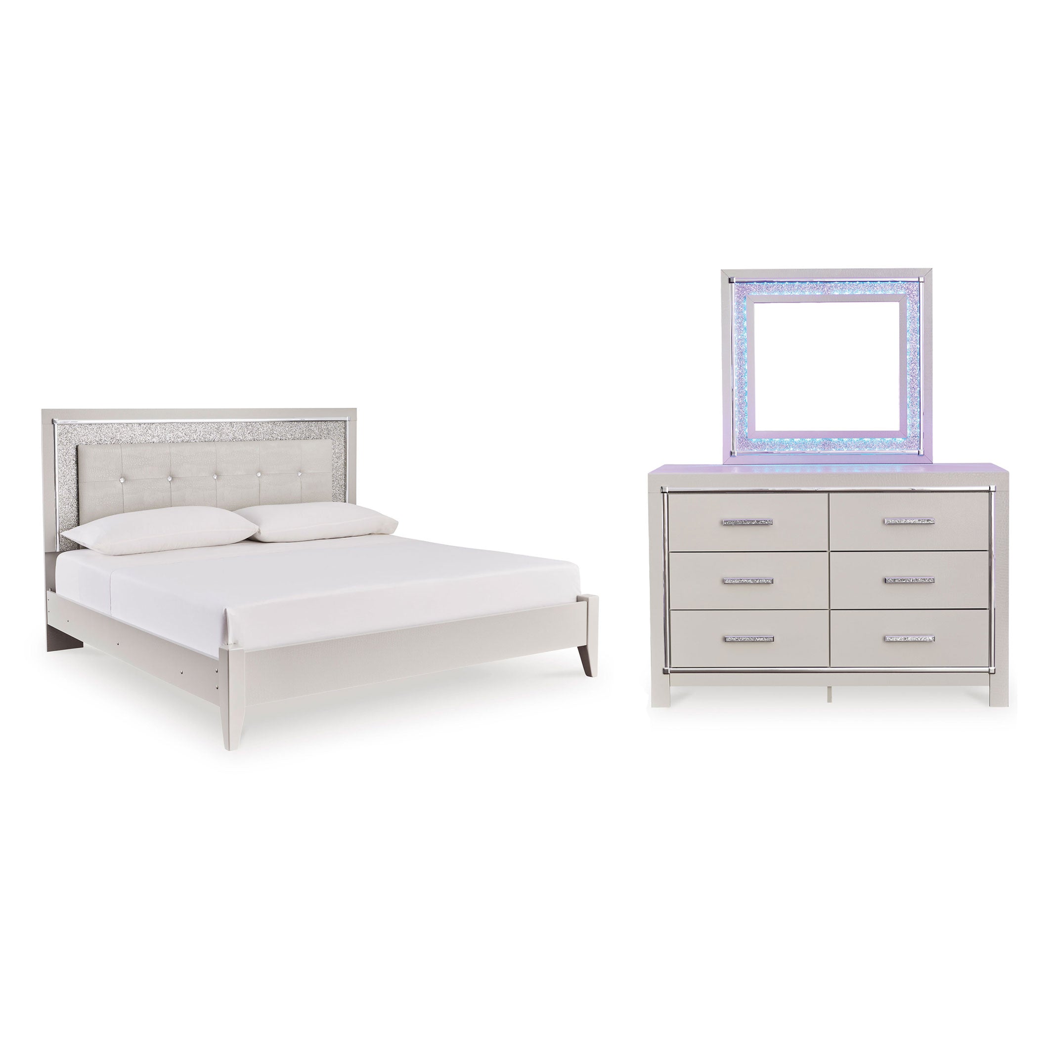 Zendaya Queen Panel Bed with Mirrored Dresser