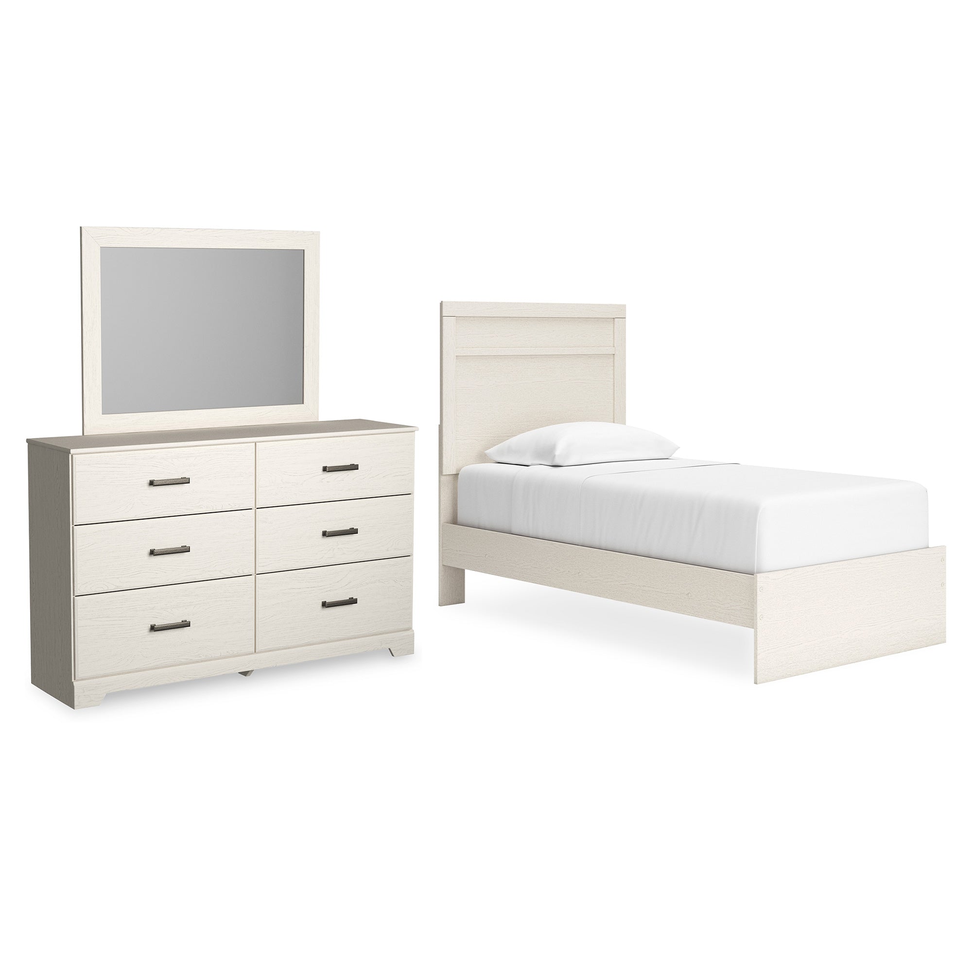 Stelsie Twin Panel Bed with Mirrored Dresser