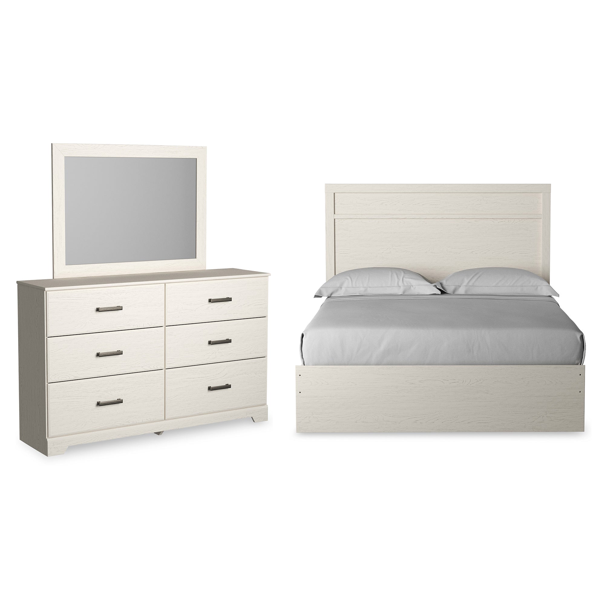Stelsie Queen Panel Bed with Mirrored Dresser