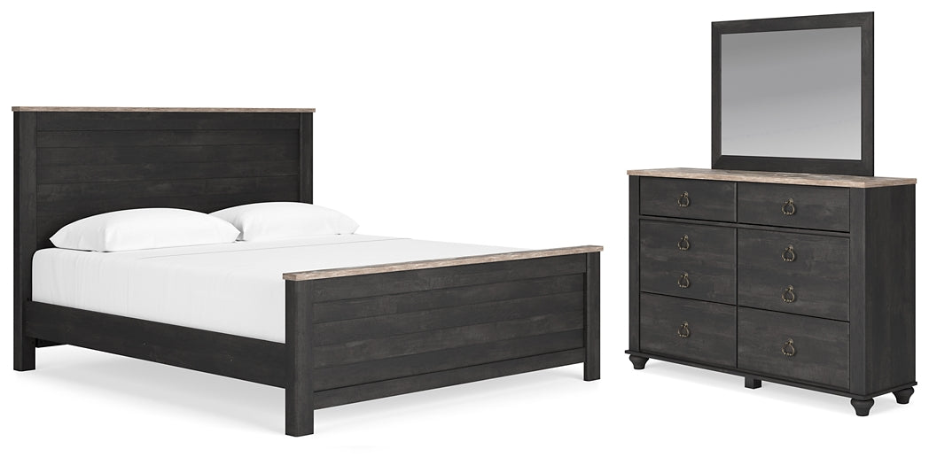 Nanforth Queen Panel Bed with Mirrored Dresser