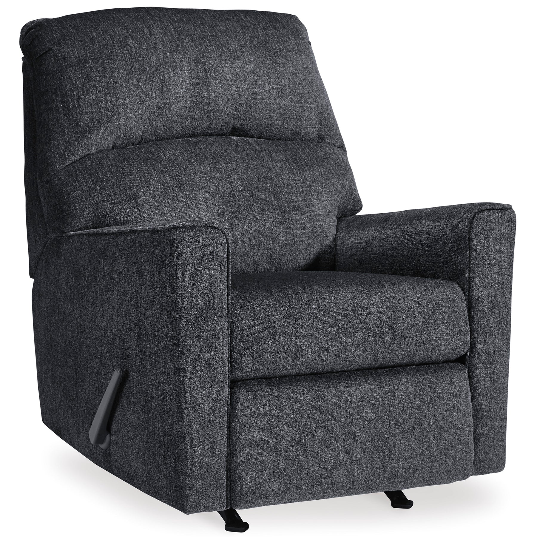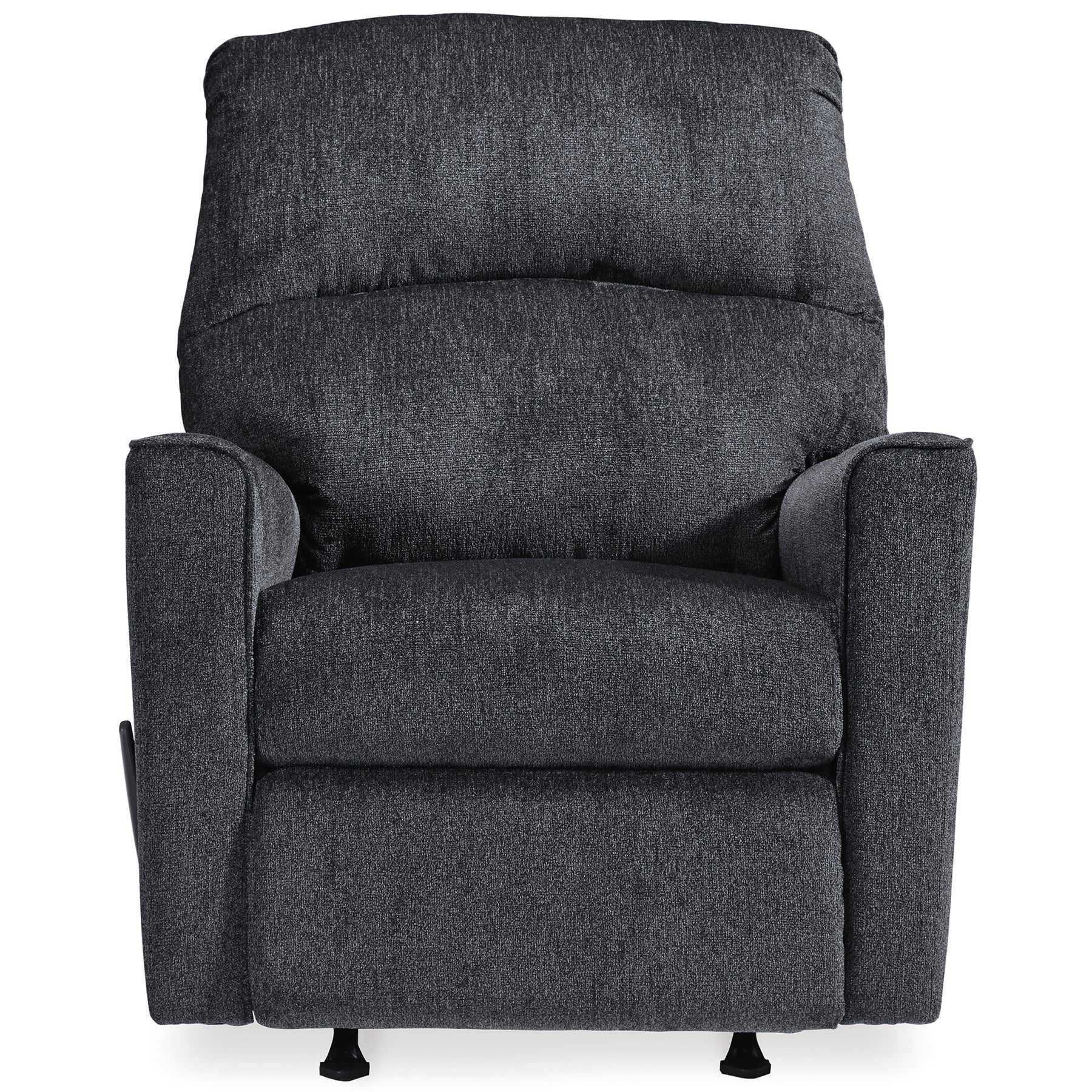 If style is the question, then this rocker recliner is the answer. Clean-lined profile is beautifully contemporary. Plush chenille fabric and plump cushioning make it so easy to comfortably kick up your heels. Richly neutral hue complements a variety of decor.