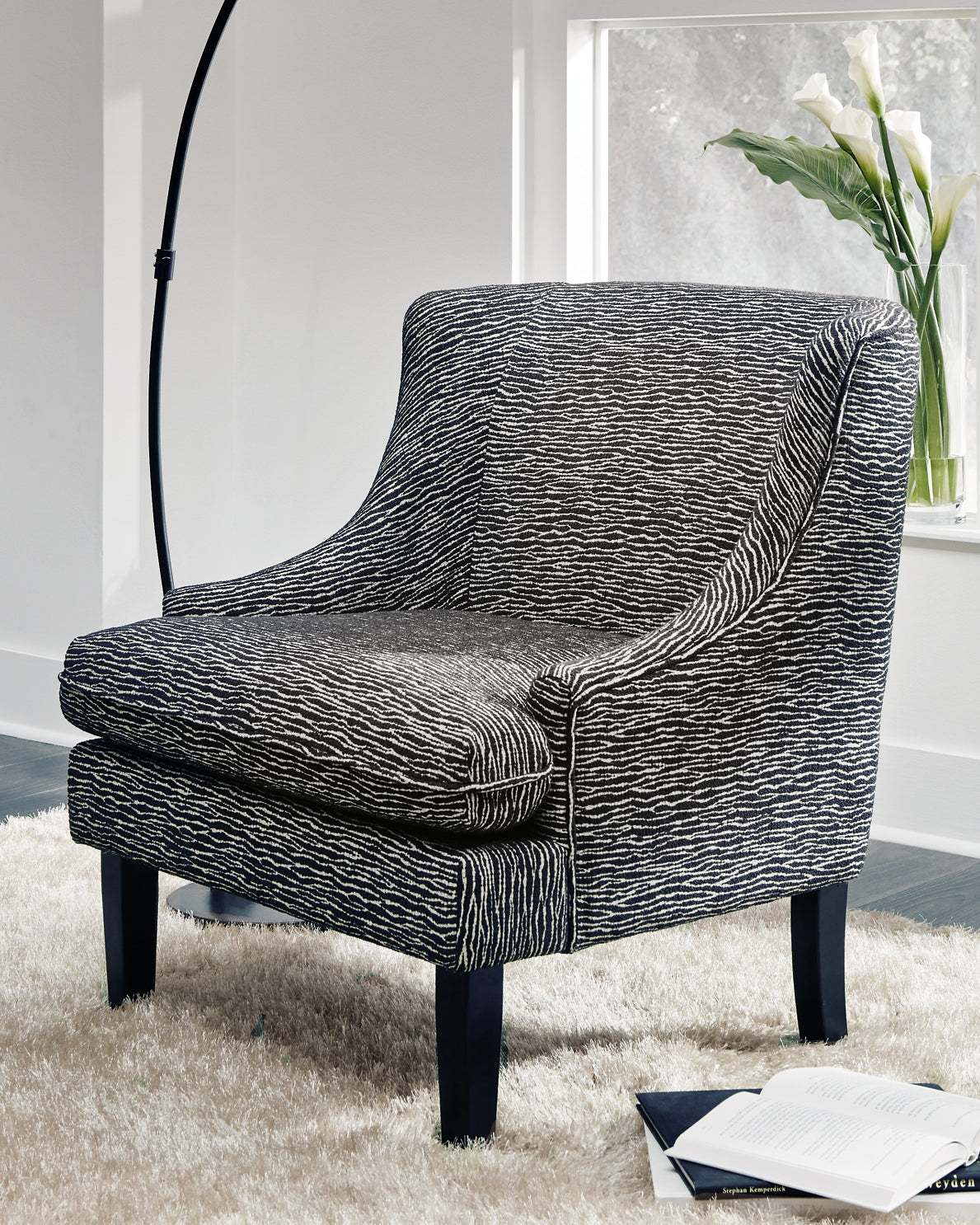 | Details | Polyester upholstery, Attached back and seat cushion, Tapered wood leg in black finish, Easy assembly | |