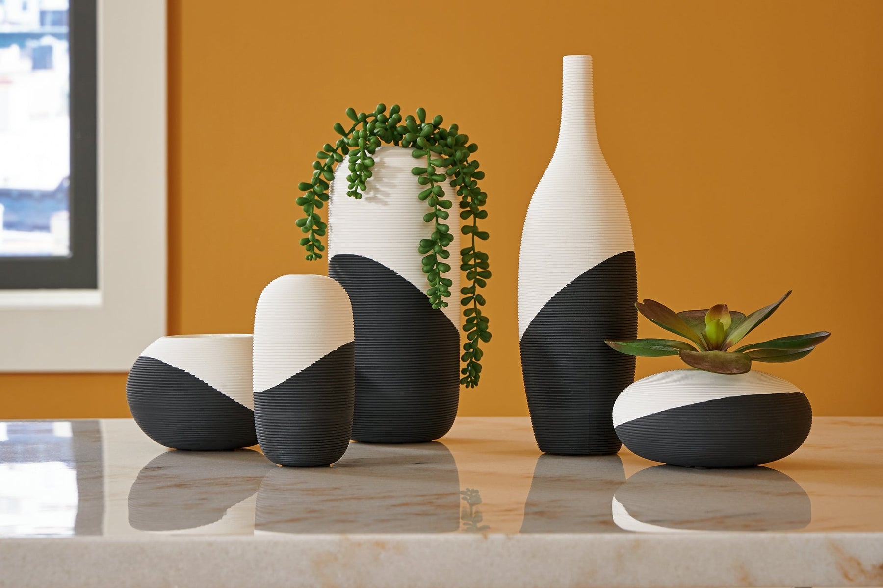 | Details | Includes 5 vases, Made of ceramic, Black and white finish, Indoor use only | |