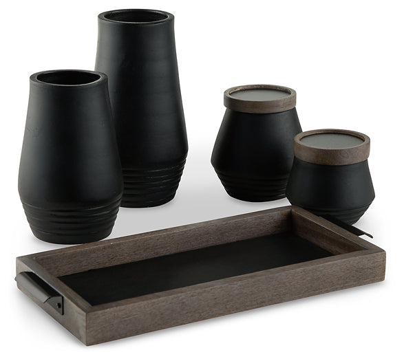 | Details | Includes 2 candle holders, tray and 2 vases, Made of terracotta, wood and metal, Candle holders hold two 3" pillar candles (not included), Tray with gray finish, Indoor use only, Due to the use of natural materials, some variations may occur | |