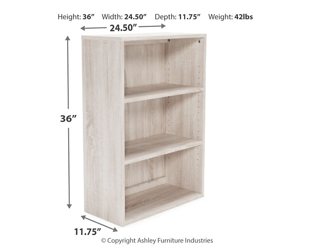Organize your life and elevate your style with this charming bookcase. Merging clean, crisp lines with a warm replicated antiqued white wood grain, it’s a simply striking example of modern farmhouse design done right. This farmhouse fresh bookcase includes two adjustable shelves to accommodate your needs. Be it in your home office, family room or guest room, what a beautiful way to put books and home accents on display.