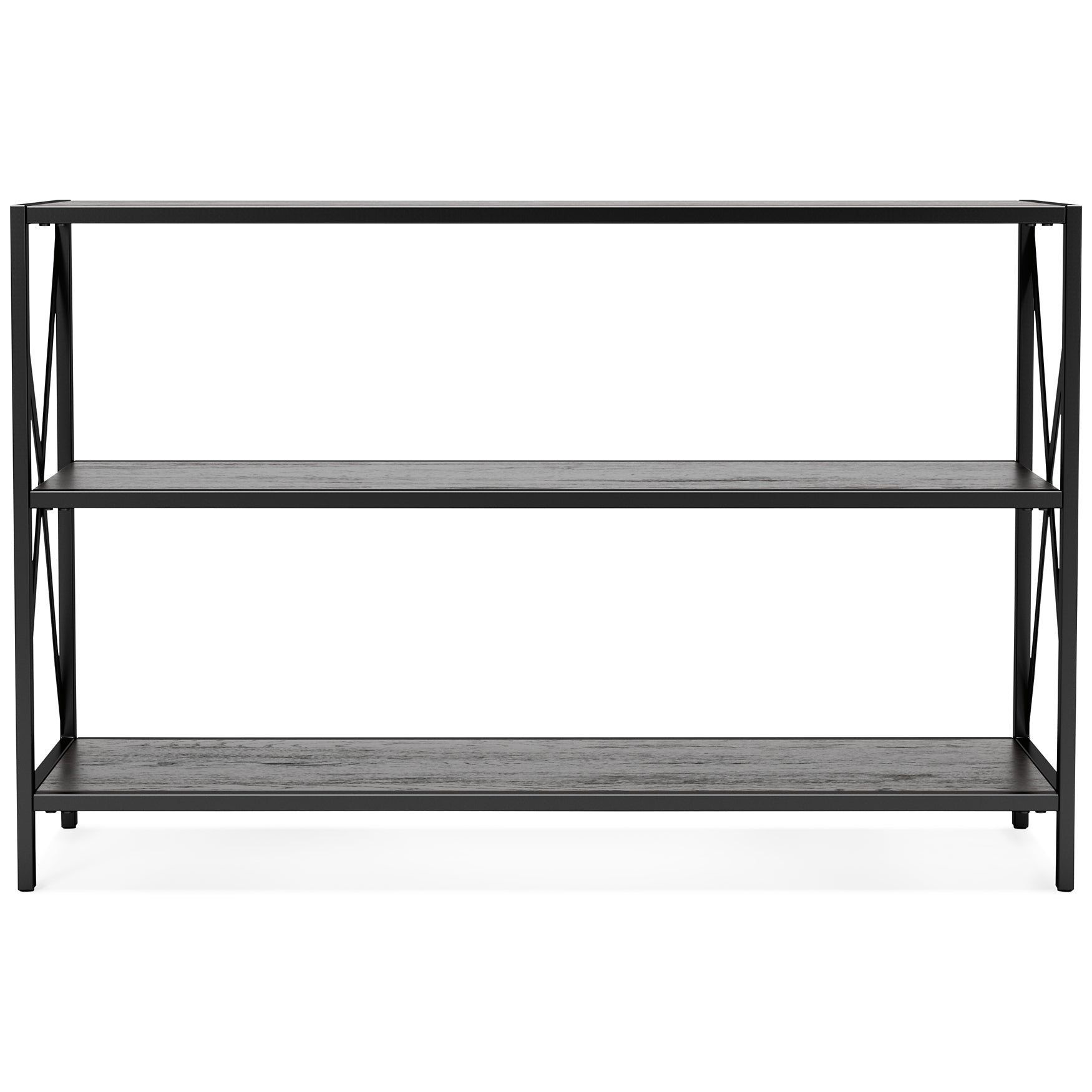 | Details | Made of engineered wood and decorative laminate, Replicated gray wood grain, Metal frame with black iron-tone finish, Cross-buck rails, 3 tiers, Assembly required | |