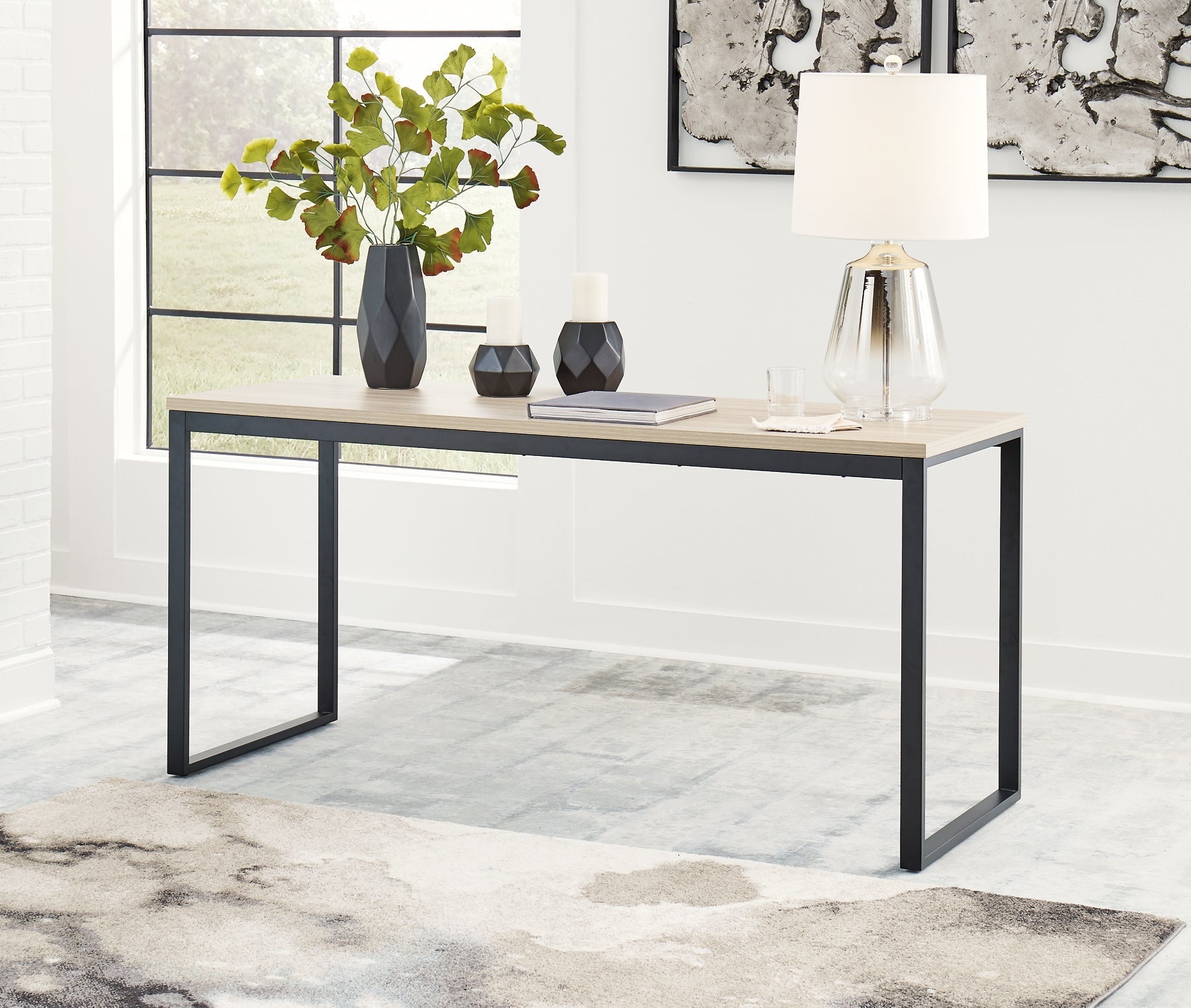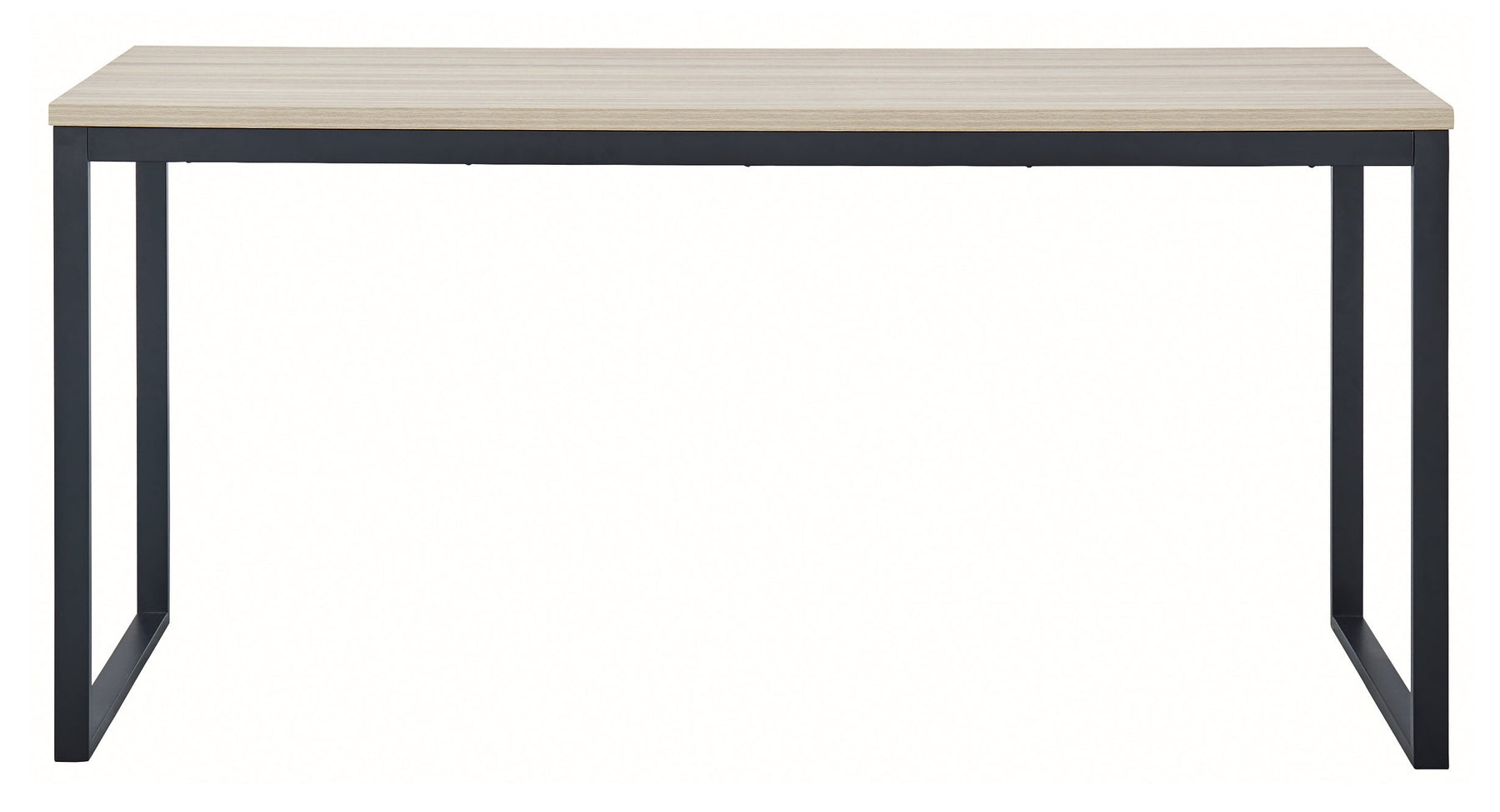 Contemporary meets casual for the ultimate office space. This desk aims to please with its durable melamine top and metal base in a powder coated finish. The top features a replicated exotic wood grain in a light tan finish, making this versatile piece perfect for your workspace. DURA TUFF™ surfaces are made of easy-clean melamine which is heat-, scratch- and water-resistant.