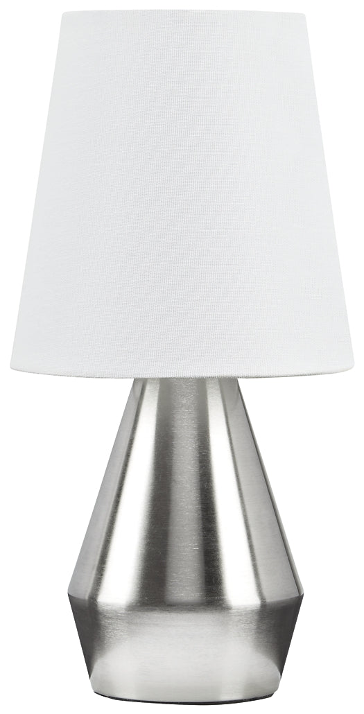 Details Made of metal with modified drum hardback fabric shade, Brushed silvertone finish, On/off switch, Single USB charging port, 1 E26 socket; type A bulb recommended (not included); 40 watts max or CFL 8 watts max; UL Listed, Assembly required