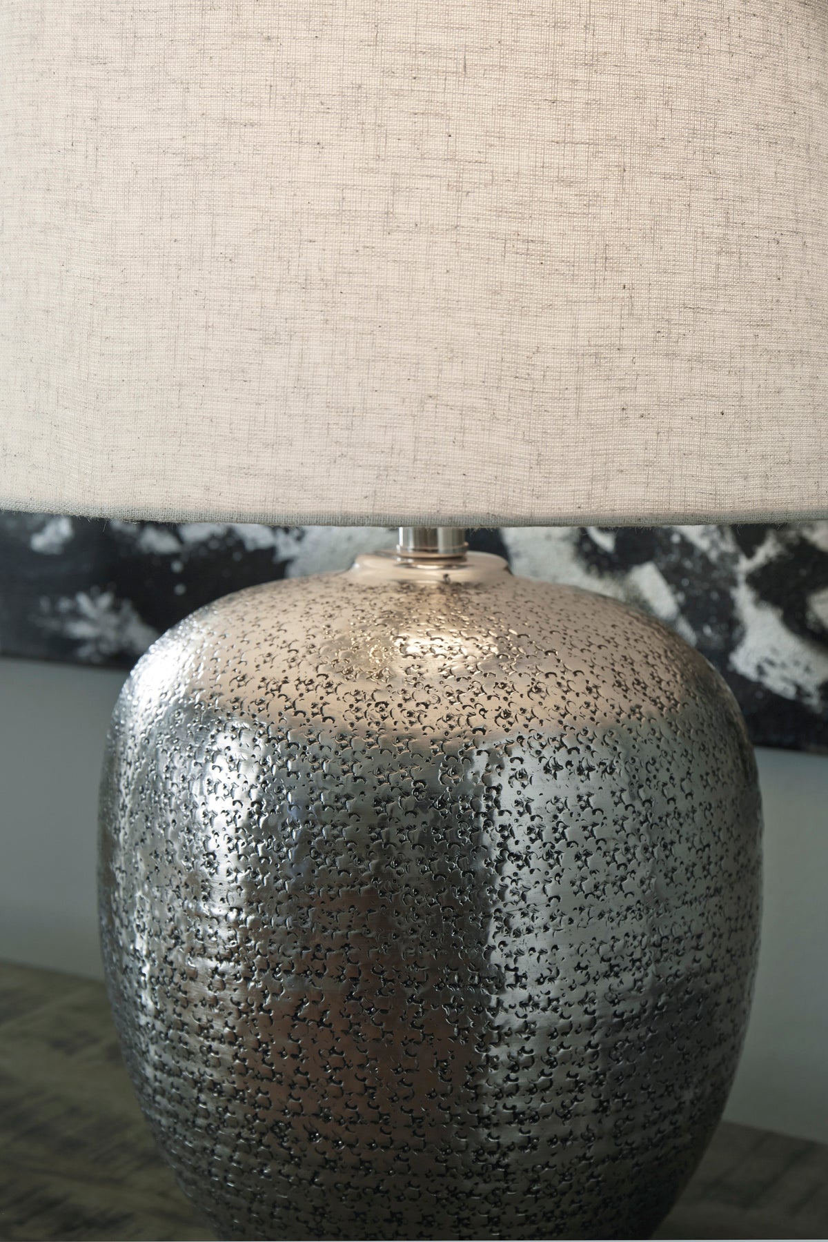 | Details | Made of antiqued silvertone hammered aluminum with modified drum shade, 3-way switch, 1 type A bulb (not included); 150 watts max or CFL 25 watts max; UL Listed, Clean with a soft, dry cloth, Assembly required | |